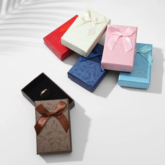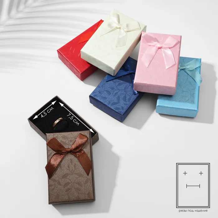 С нашими прекрасными коробочками любой подарок станет еще лучше и ярче. Футляр выполнен из прочного плотного картона. Оптимальный размер коробки 5*8см позволяет разместить разнообразные виды ювелирных изделий – от сережек до колье. Внутри каждой коробочки с крышкой есть черная бархатная подложка. С помощью специальных прорезей на подушечке можно аккуратно разместить и зафиксировать цепочки, гвоздики и перстни. А если убрать подложку, упаковка подойдет даже для часов с мягким плоским ремешком или на цепи.