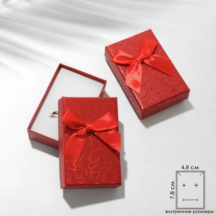 Коробочка подарочная под серьги/кулон/кольцо «Блестящие сердца», 5×8, красная, вставка белая — Характеристики