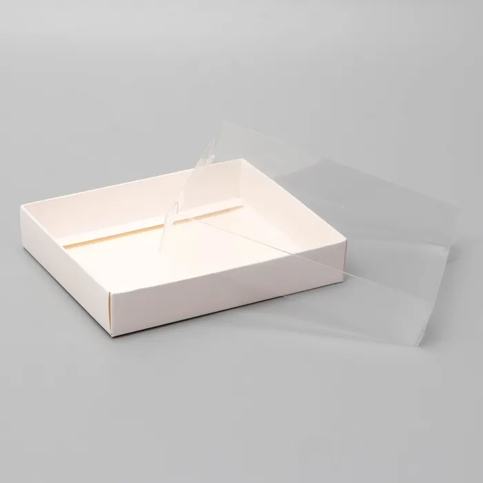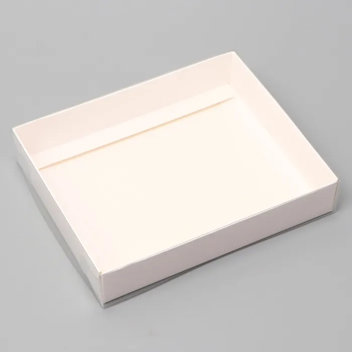 Коробочка сборная с прозрачной крышкой — идеальное решение для хранения и презентации различных предметов и презентов и кондитерских изделий.