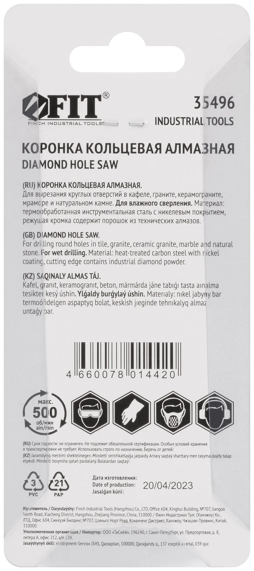 Выберите алмазную коронку FIT 35496, чтобы обеспечить профессиональный и чистый результат в вашей работе.