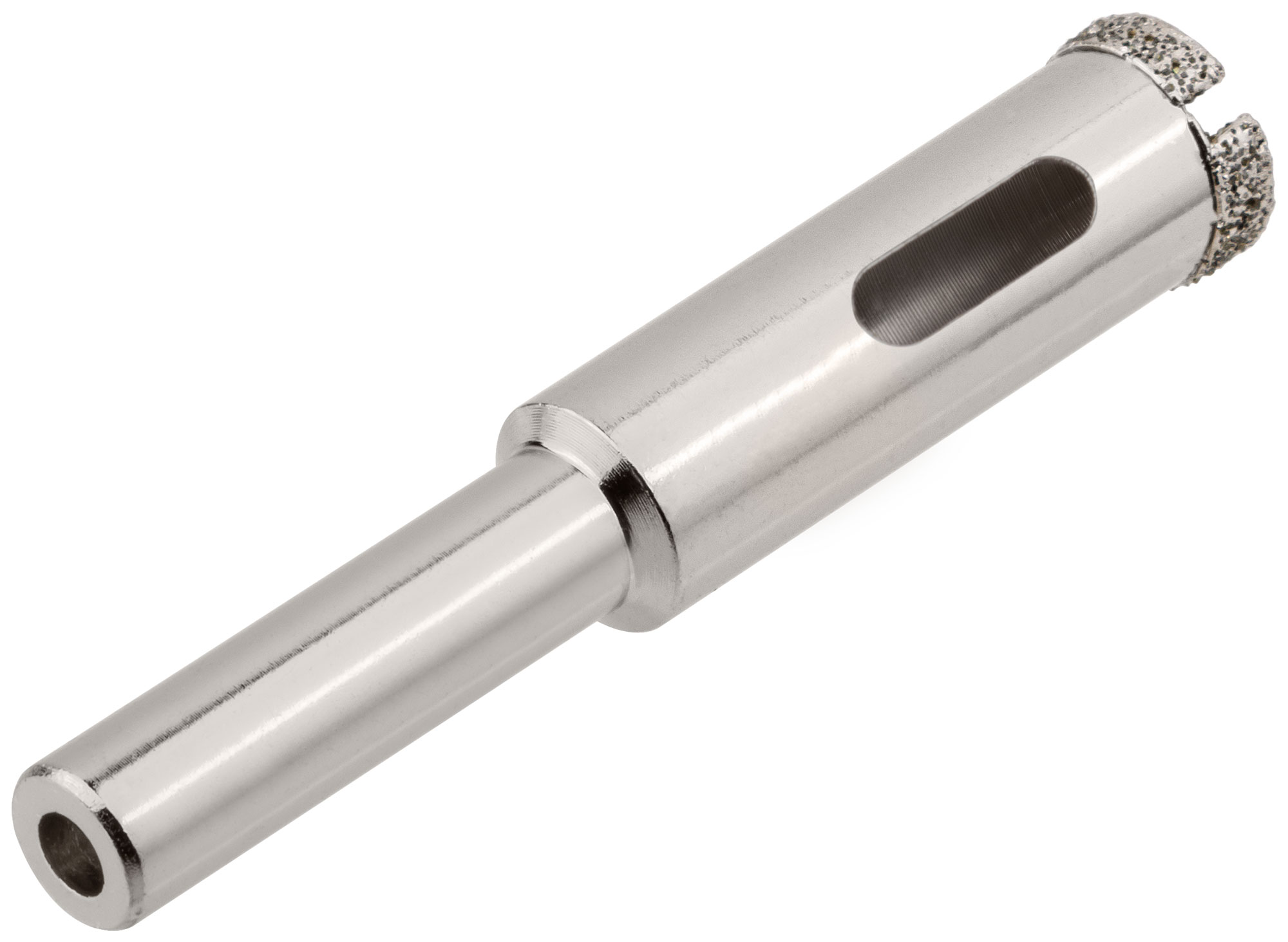 Изготовлена из инструментальной стали с никелевым покрытием, обеспечивающим долговечность и защиту от коррозии. Режущая кромка усилена порошком из технических алмазов для эффективного и быстрого сверления.