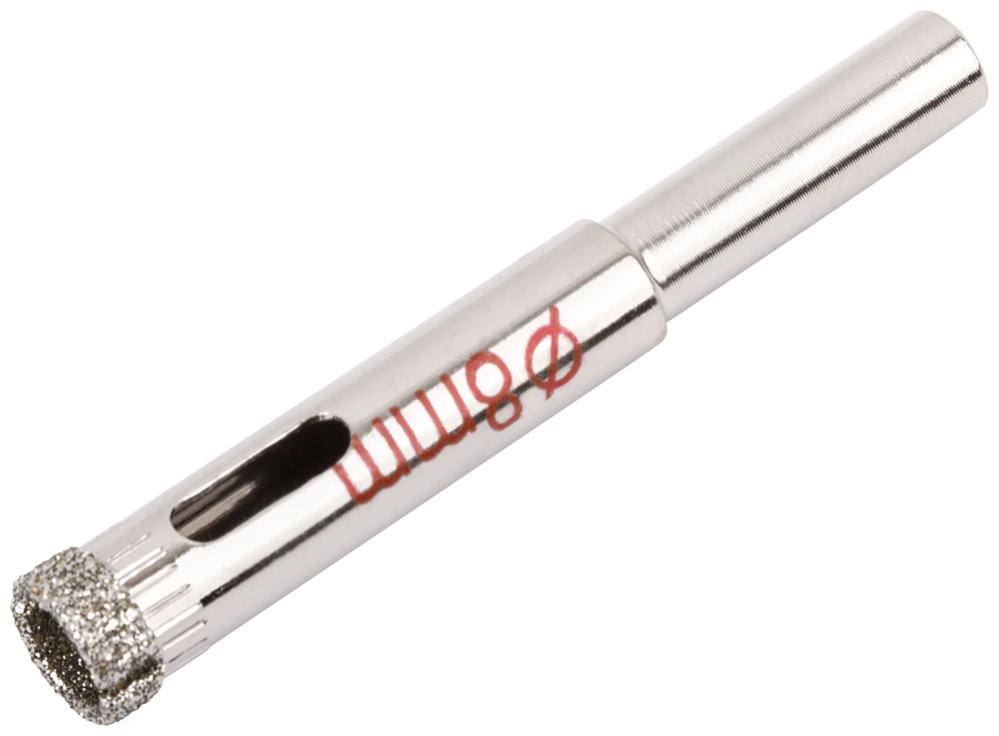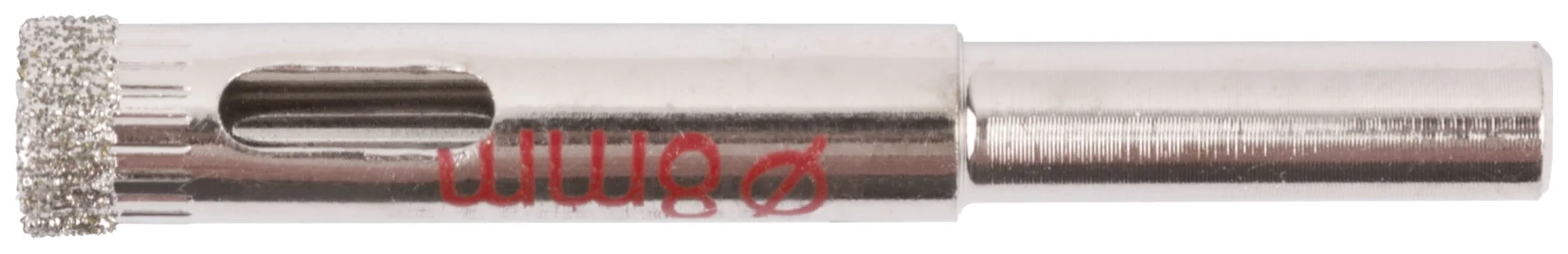 Коронка изготовлена на хромированной стальной основе с алмазным напылением на режущих кромках, что гарантирует долговечность и эффективное сверление. Используется метод влажного сверления, что снижает риск перегрева и увеличивает срок службы инструмента.