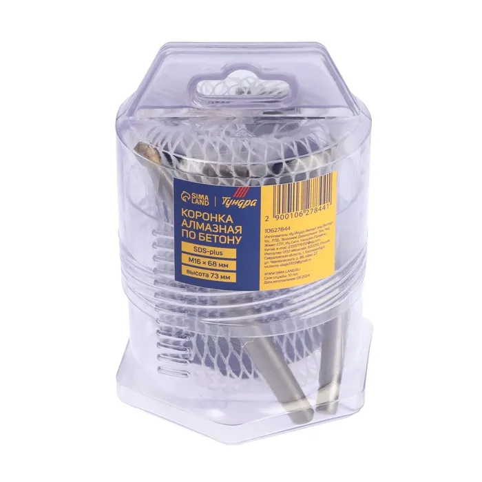 Коронка алмазная по бетону ТУНДРА, SDS-plus, М16×68 мм, высота 73 мм — Характеристики