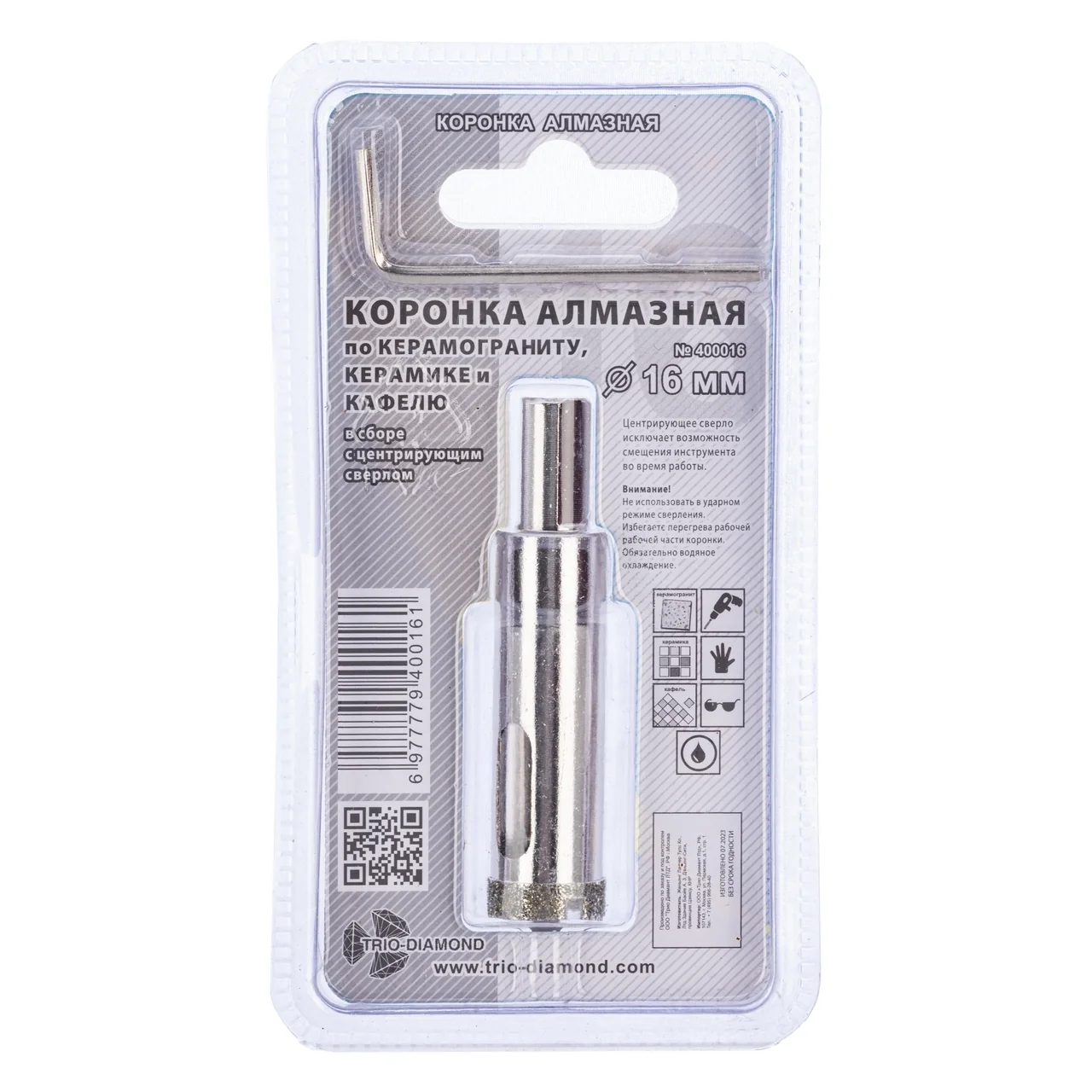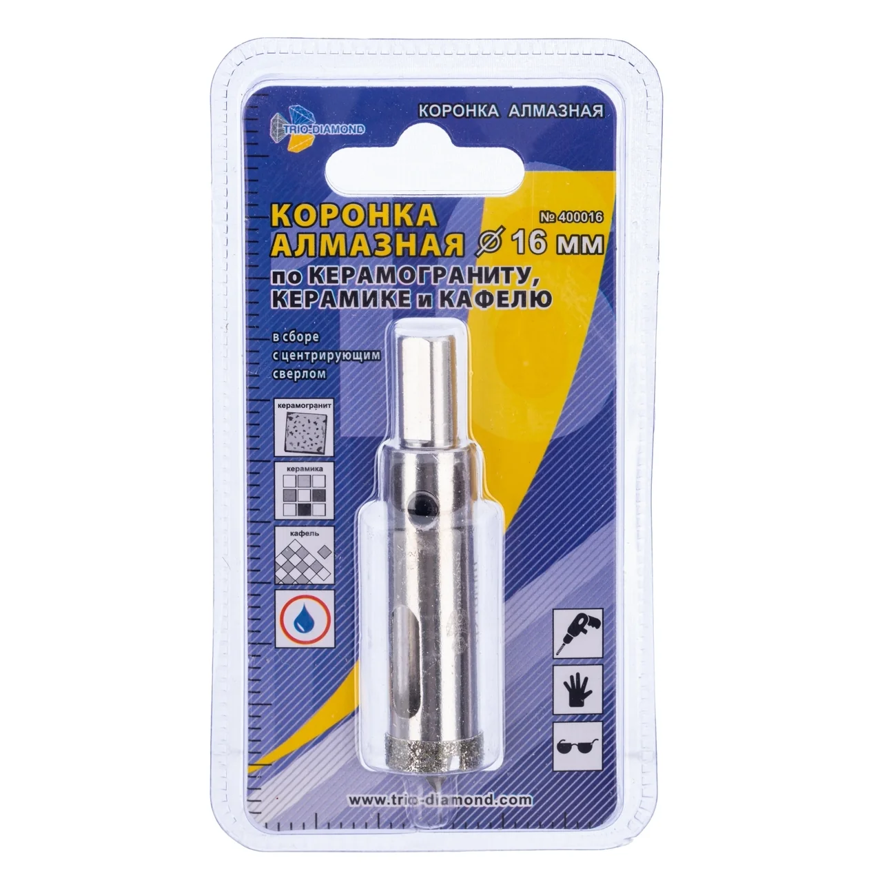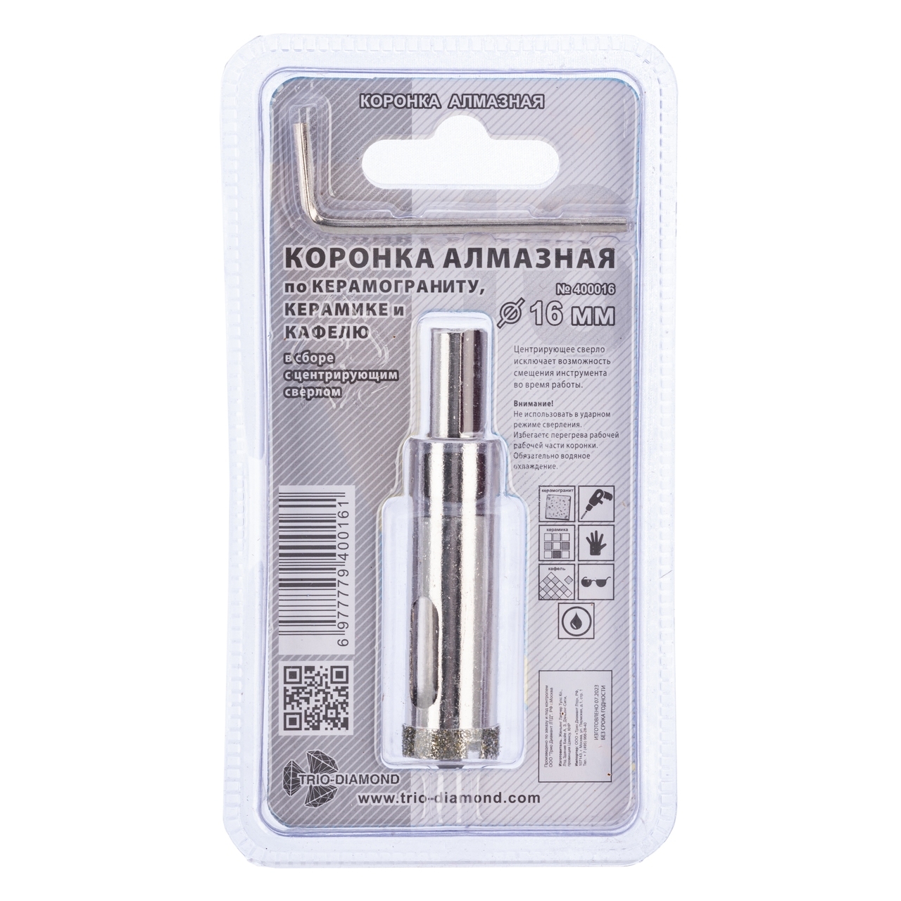 Выберите коронку TRIO-DIAMOND 400016 для точного и долговечного сверления керамики и стекла.