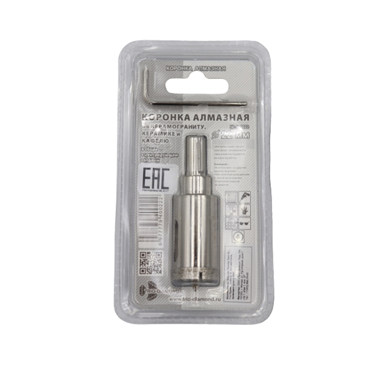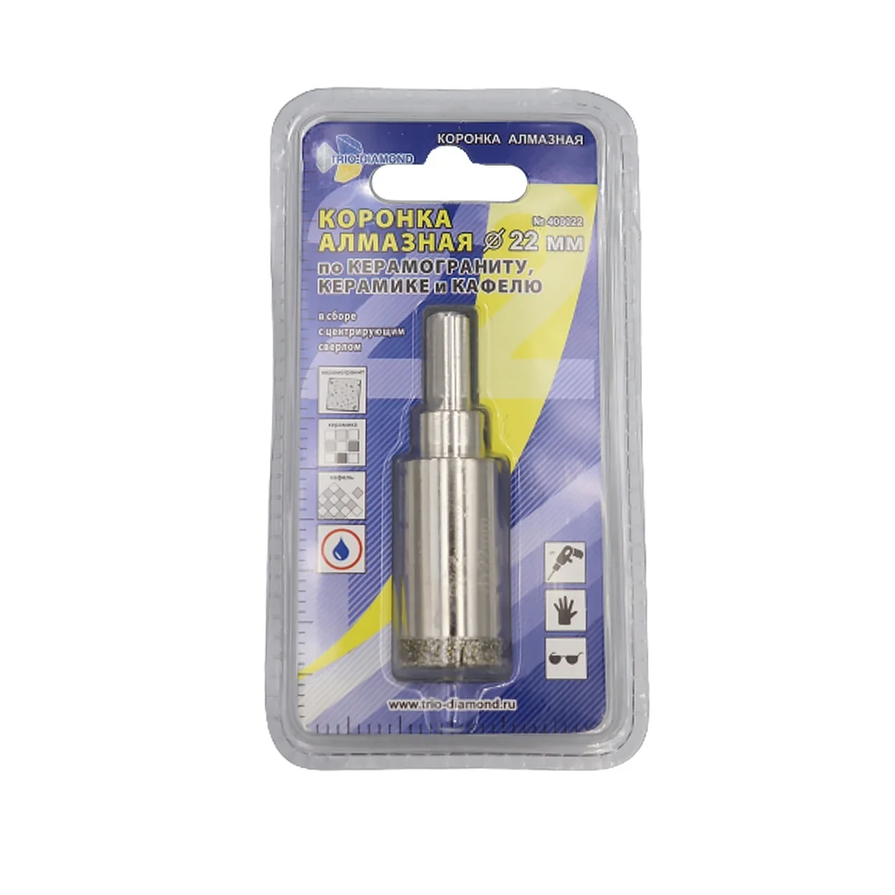 Коронка алмазная 22 мм с центрирующим сверлом для керамики и кафеля