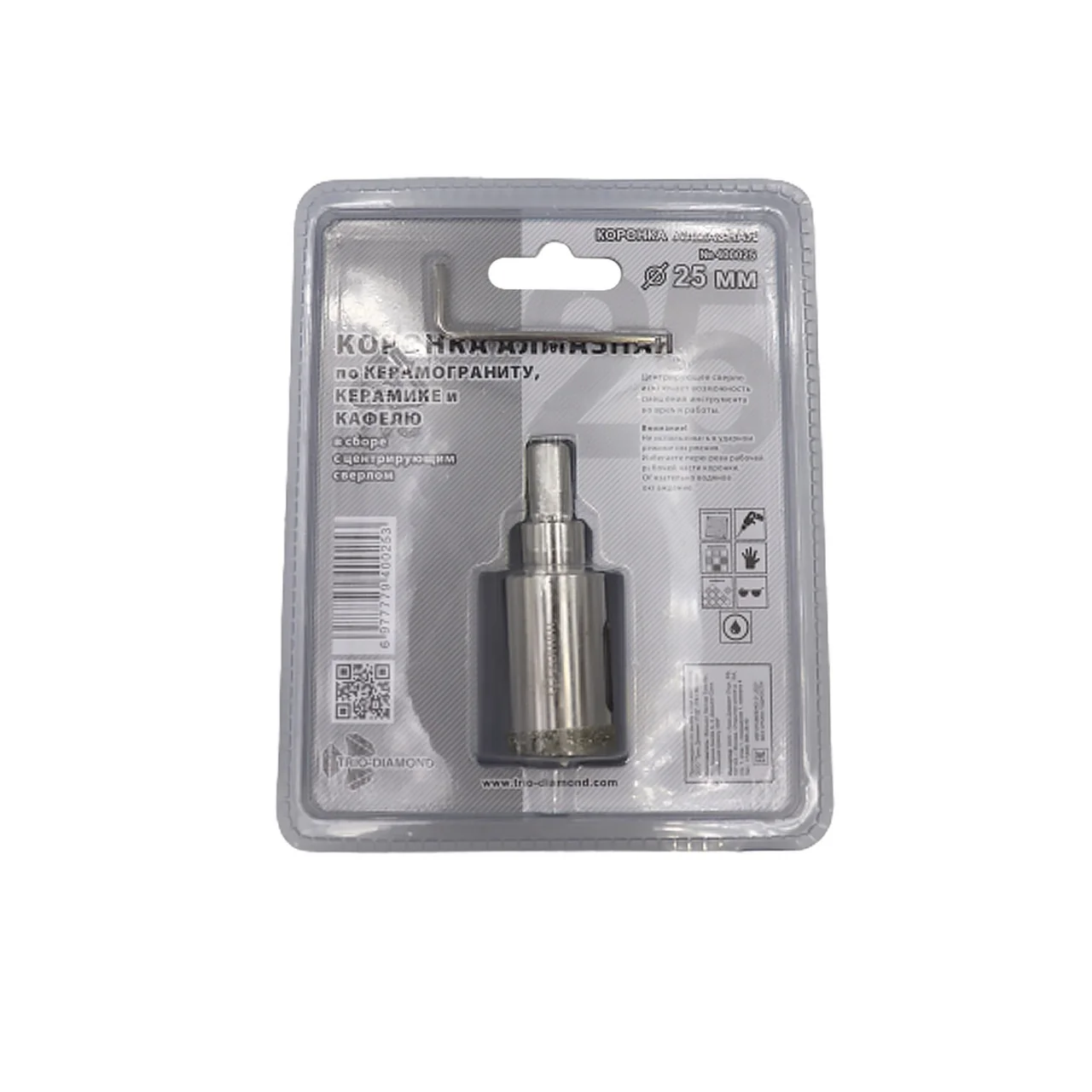 Коронка алмазная 25 мм с центрирующим сверлом для керамики
