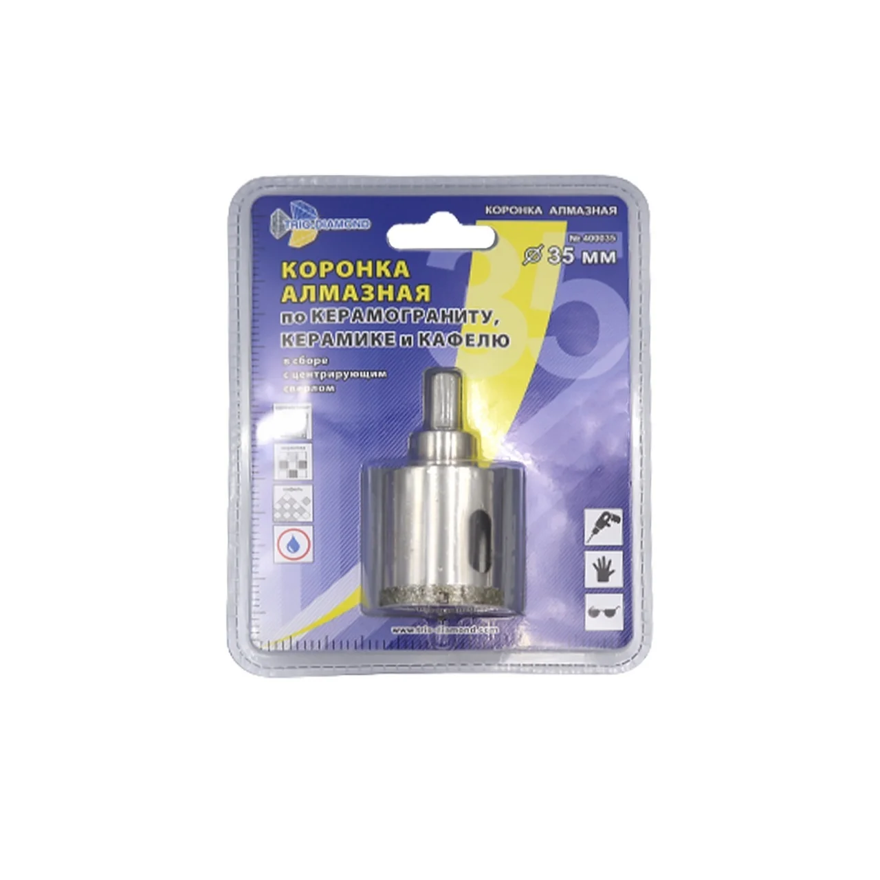 Коронка алмазная 35 мм для керамики и кафеля с центрирующим сверлом