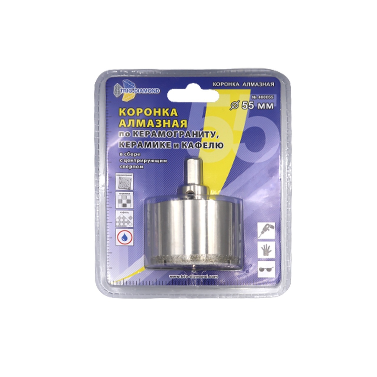 Коронка алмазная 55 мм с центрирующим сверлом для керамики и кафеля