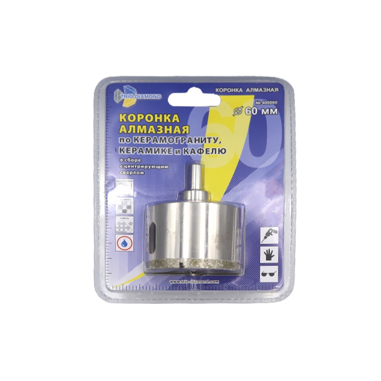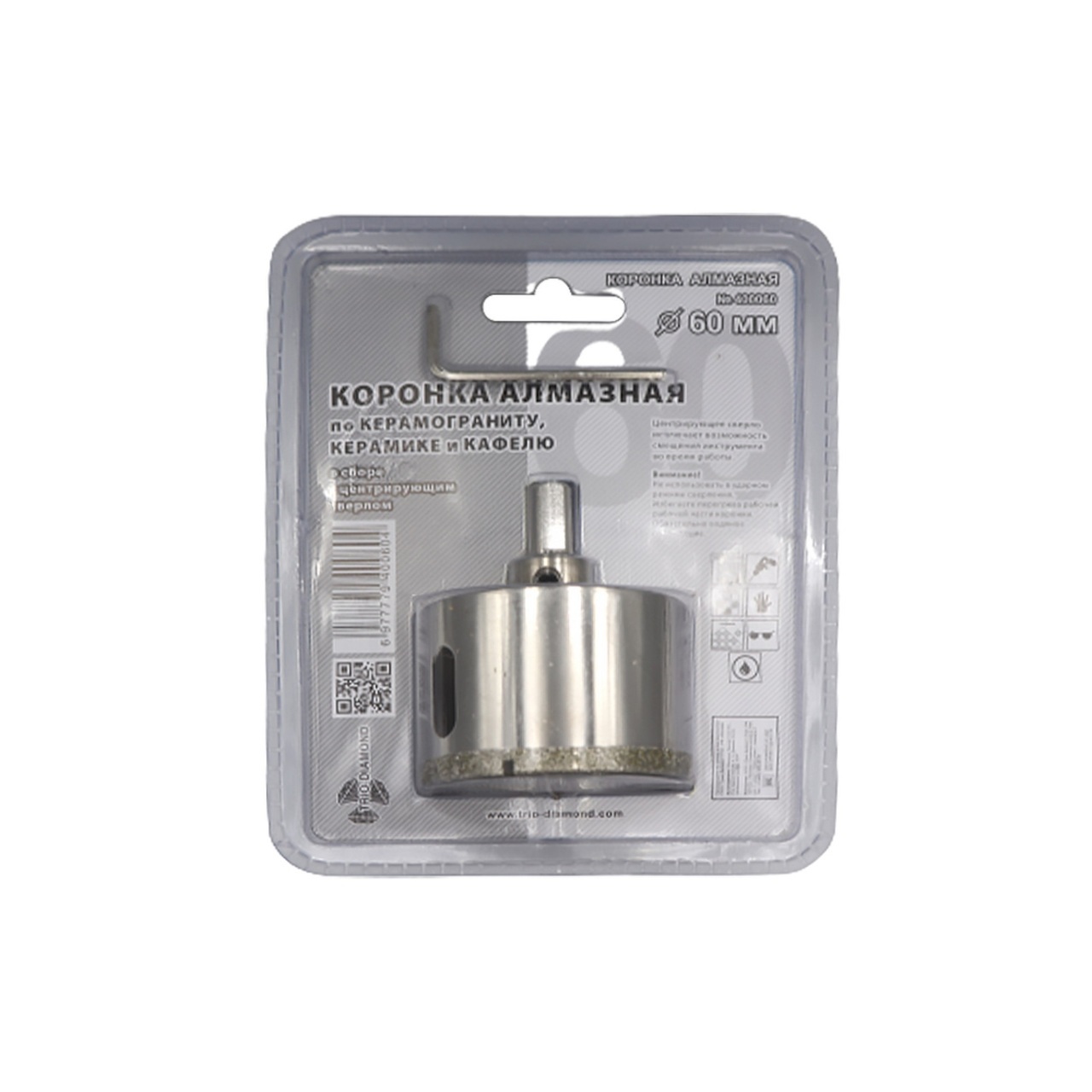 Изделие выполнено по технологии гальванической пайки, что обеспечивает высокую прочность и долговечность. Диаметр сверления составляет 60 мм, а глубина — до 35 мм, что позволяет решать большинство задач при укладке плитки и монтаже сантехники.