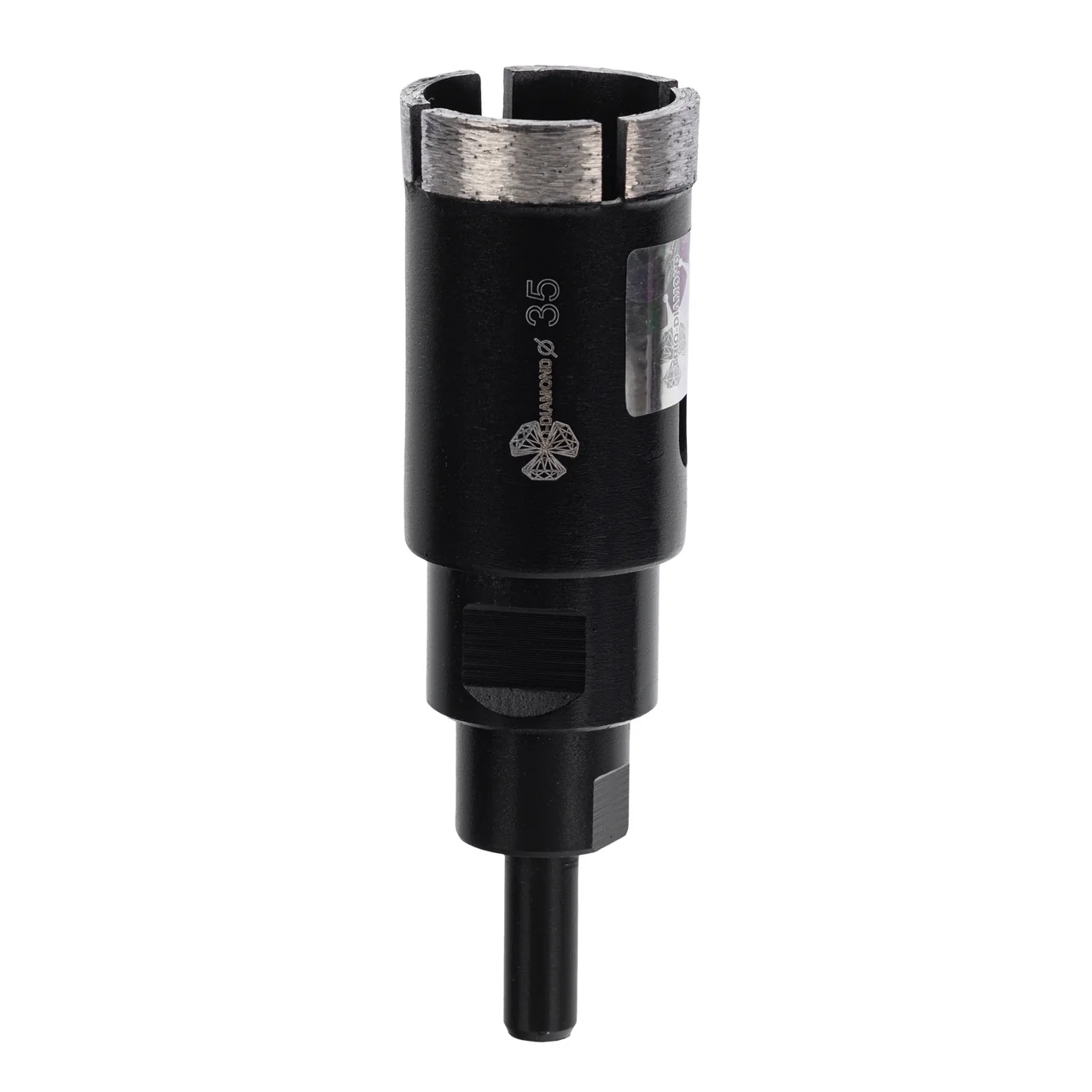 Коронка алмазная TRIO-DIAMOND диаметром 35 мм — незаменимый инструмент для профессионалов, работающих с керамогранитом, гранитной и мраморной плиткой. Она позволяет быстро и точно сверлить отверстия, минимизируя риск повреждения материала.