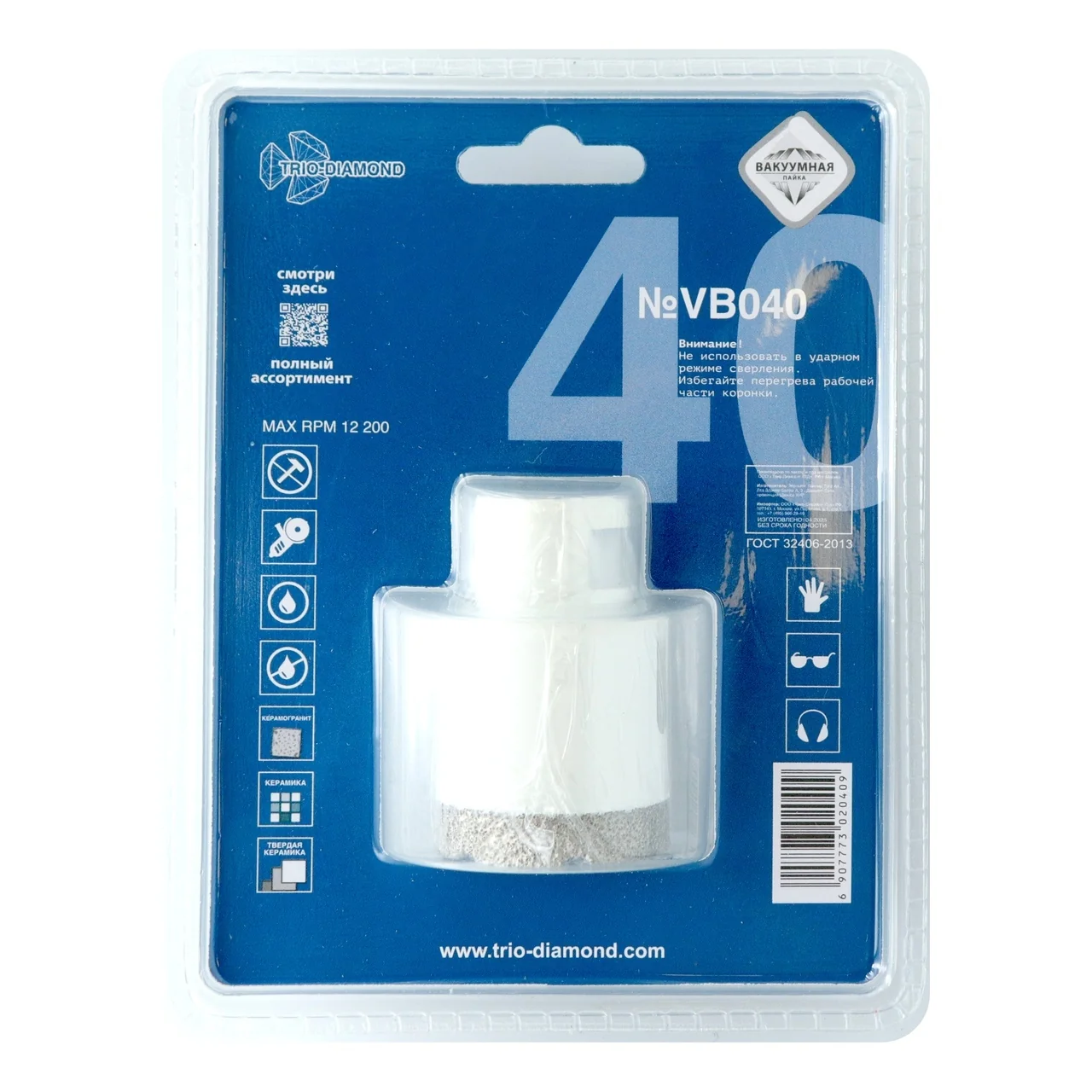 Когда нужно быстро и точно просверлить отверстие в керамограните или мраморной плитке, коронка TRIO-DIAMOND диаметром 40 мм станет незаменимым помощником. Она идеально подходит для использования с угловыми шлифовальными машинами (УШМ), обеспечивая качественное выполнение работы без лишних усилий.