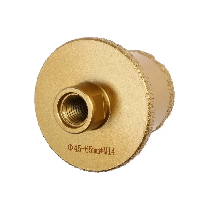 Коронка алмазная ТУНДРА, для УШМ, для отверстий под слив, по плитке, мрамору, 45/65 мм, М14 — Характеристики