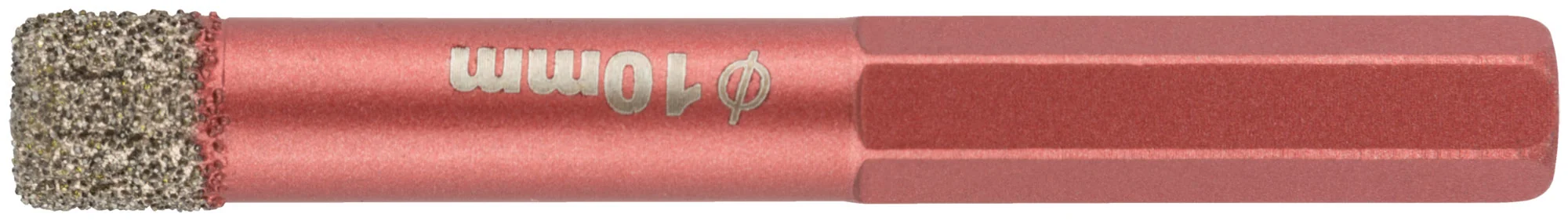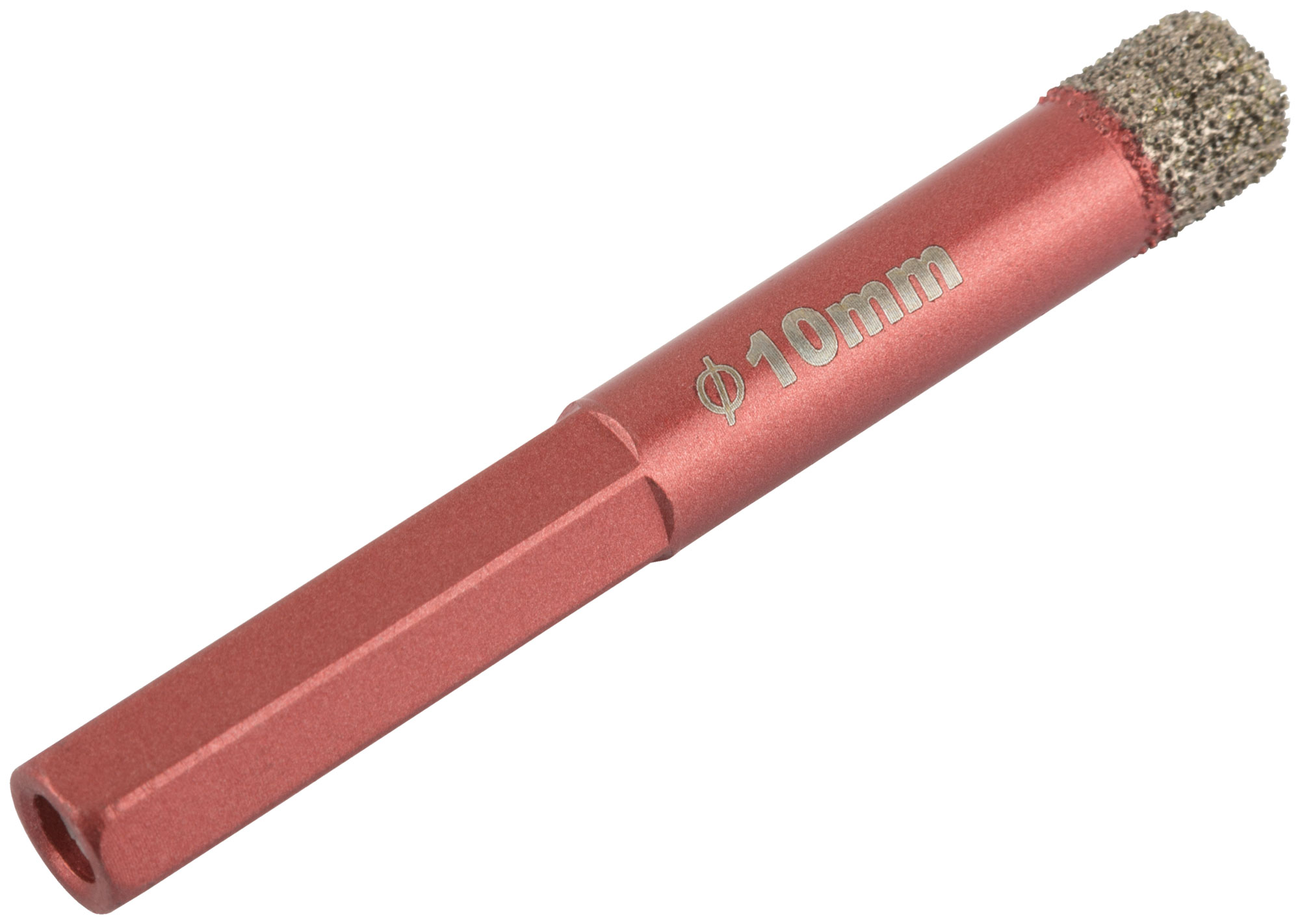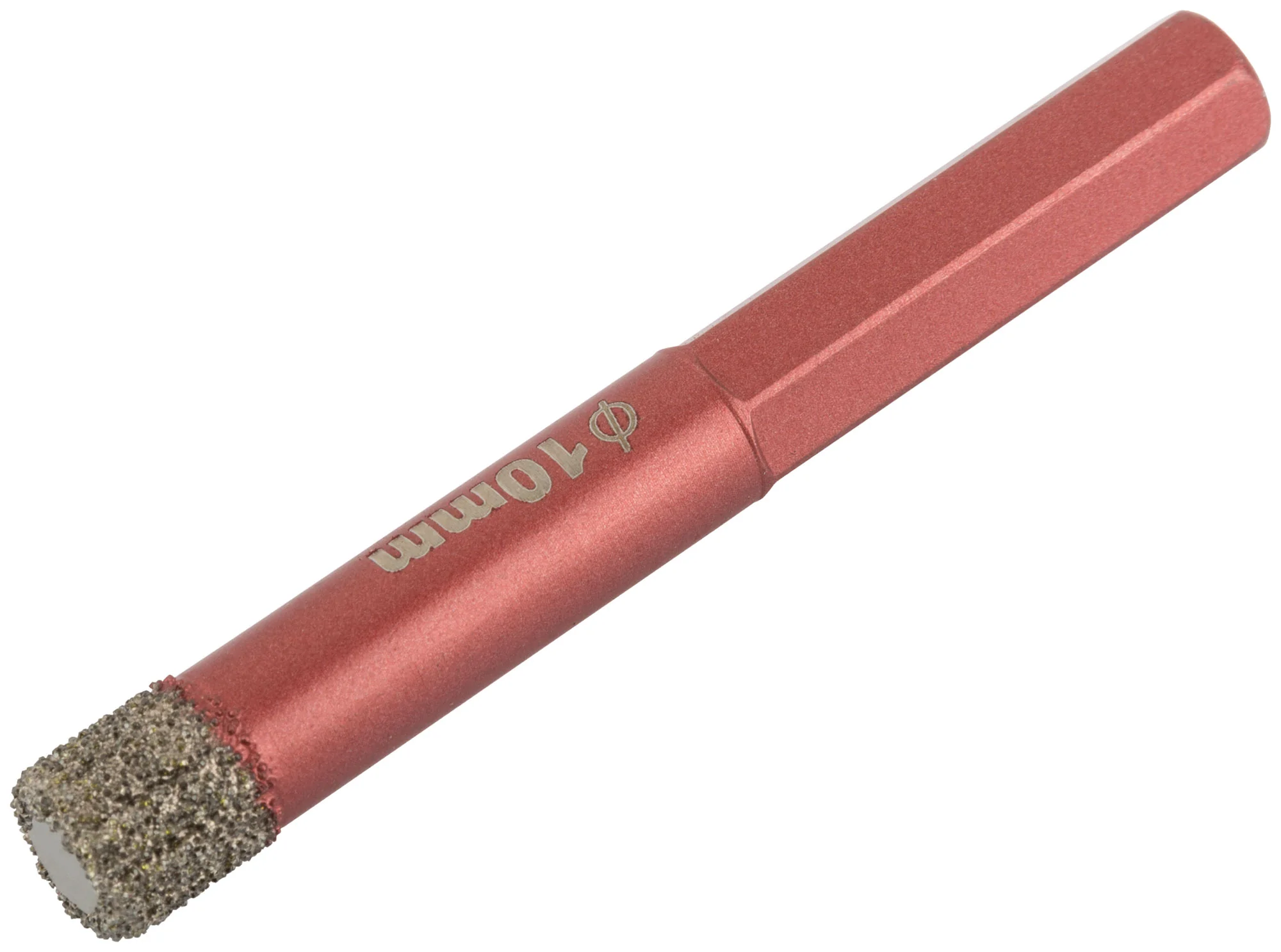 Данная коронка изготовлена из инструментальной стали с применением технических алмазов, что гарантирует высокую износостойкость и долговечность. Ее конструкция включает шестигранный хвостовик, который обеспечивает надежное крепление в дрели, и специальный охлаждающий материал внутри — воск, который способствует длительной и эффективной работе.
