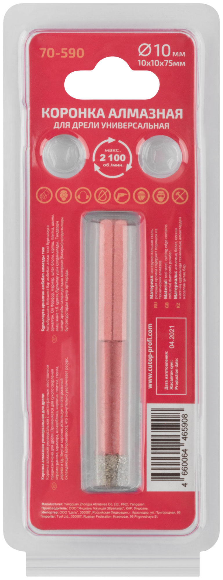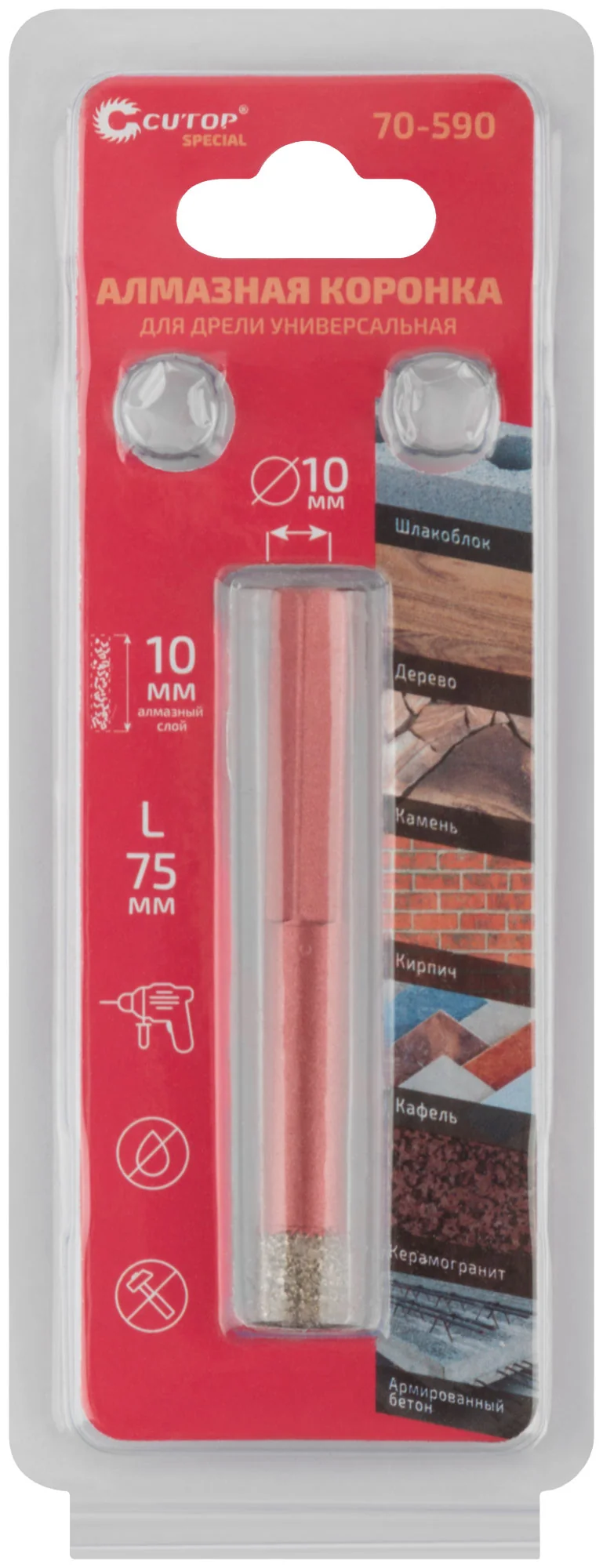 Коронка алмазная от CUTOP — идеальный инструмент для мастеров и профессионалов, которым требуется быстро и качественно сверлить разнообразные материалы. Незаменима при обработке керамогранита, мрамора, шлакоблока, кирпича, плитки, стекла и дерева. Используйте её в ситуациях, где необходимо обеспечить максимальную точность и чистоту сверления без использования воды.