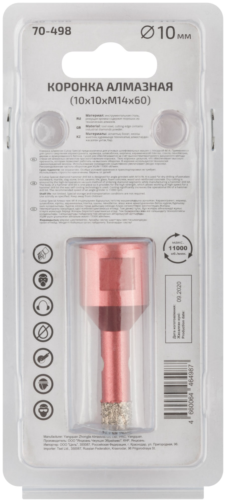 Коронка алмазная CUTOP Special предназначена для использования с углошлифовальными машинами (УШМ) с посадкой М14. Она обеспечивает эффективное сухое сверление таких сложных материалов, как керамогранит, мрамор, кирпич и даже армированный бетон. Это идеальный инструмент для профессионалов, которым нужна надежность и быстрота в работе.
