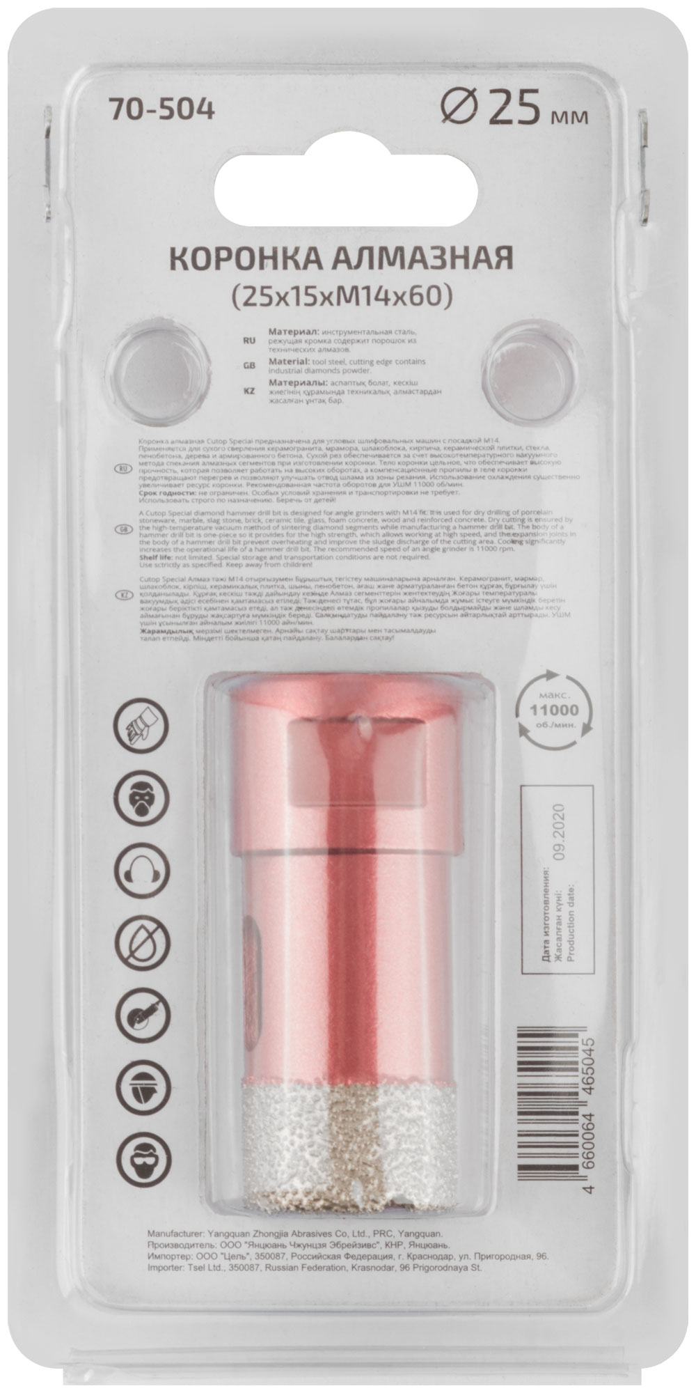Коронка алмазная CUTOP Special — это надежный инструмент для профессионалов, специализирующихся на сверлении твердых материалов. Она идеально подходит для сухого сверления керамогранита, мрамора, кирпича, пенобетона и даже армированного бетона, что делает её незаменимой на строительных площадках и при отделочных работах.