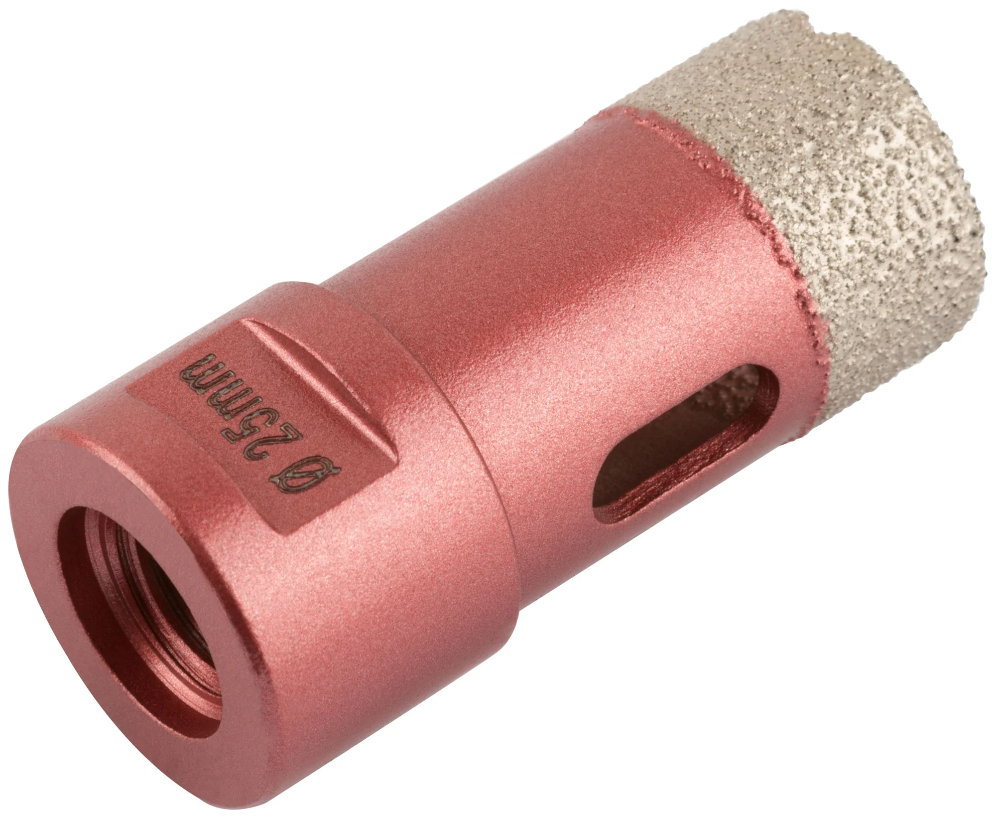 Коронка оснащена компенсационными пропилами, которые предотвращают перегрев и улучшают отвод шлама из зоны резания, продлевая срок службы инструмента. Высокотемпературный вакуумный метод спекания алмазных сегментов обеспечивает качественный и быстрый рез.