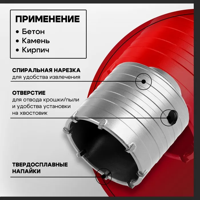 Эффективное решение для бурения! Коронка буровая 68 мм – это специализированный инструмент для создания отверстий диаметром 68 мм в бетоне, камне и кирпиче. Подходит для использования с дрелью и перфоратором.