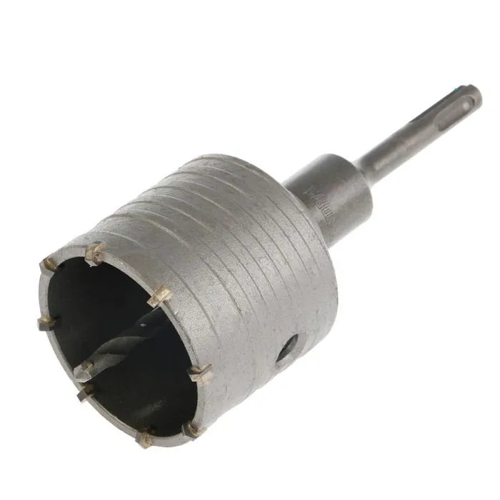 Коронка буровая ТУНДРА предназначен для перфораторов и дрелей. С помощью неё можно сверлить отверстия больших диаметров как в кирпичных, так и бетонных стенах.