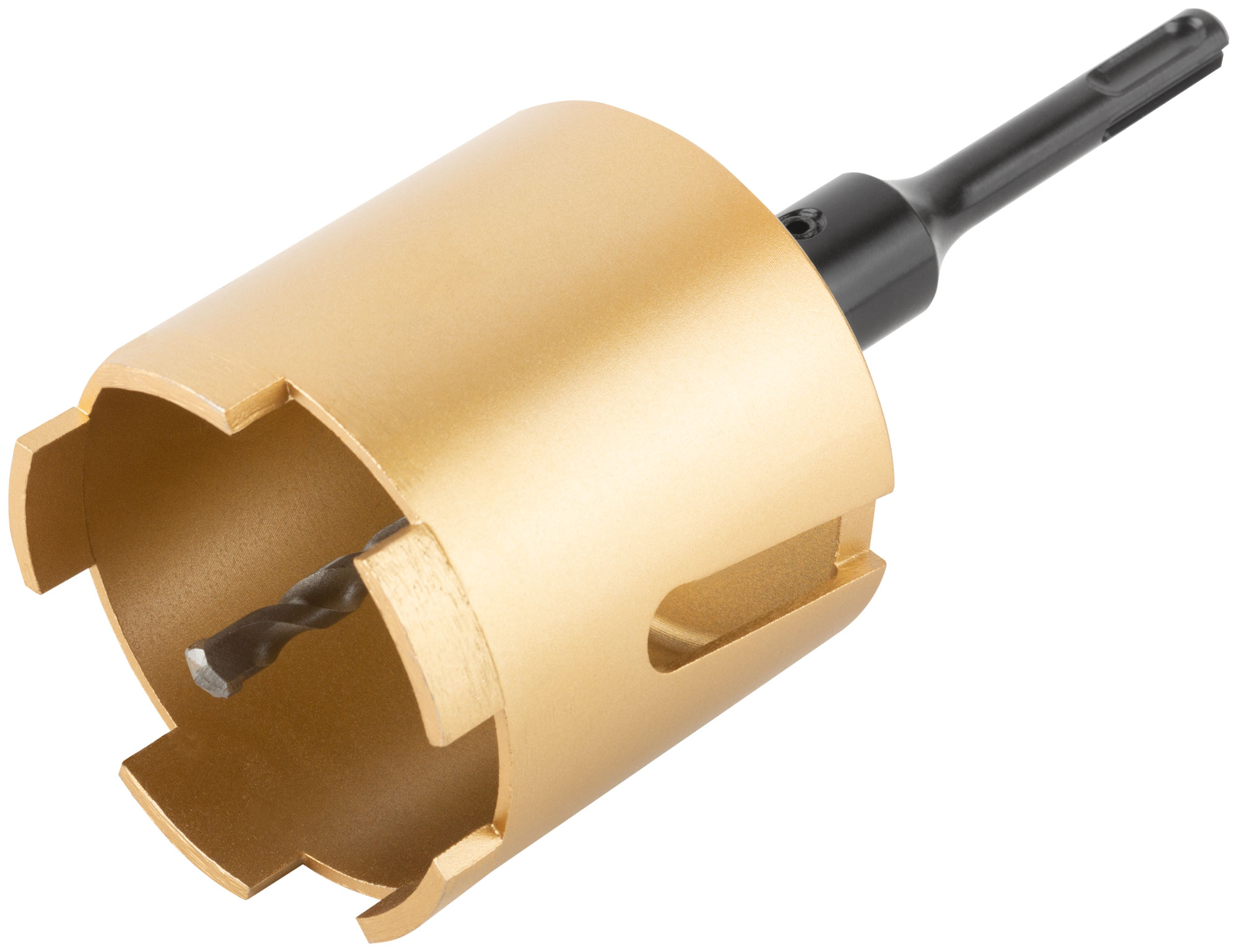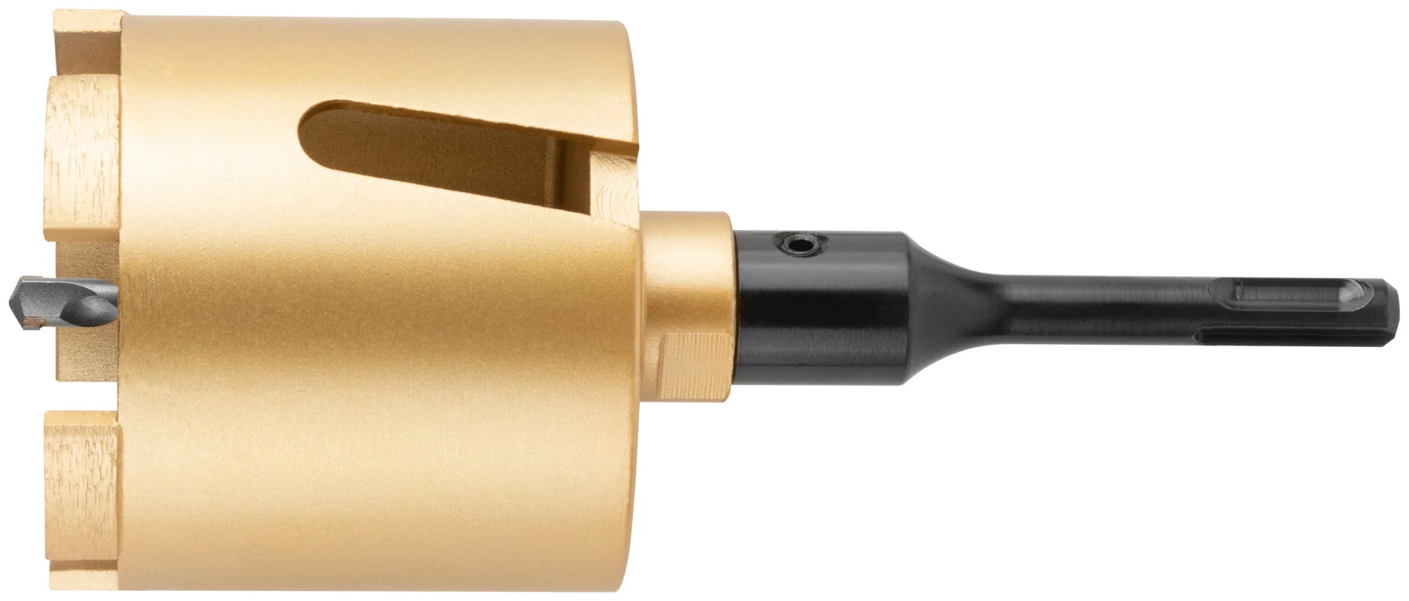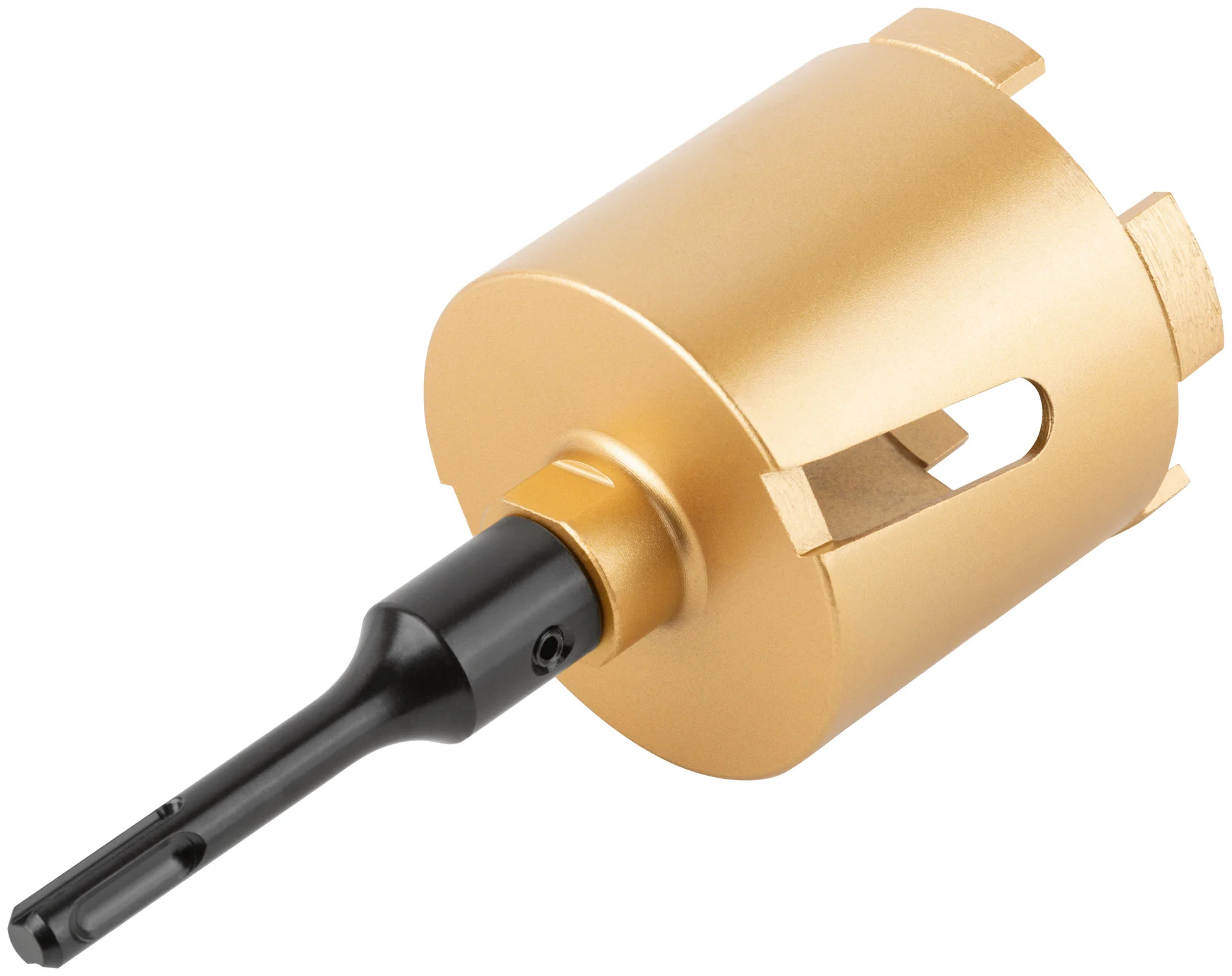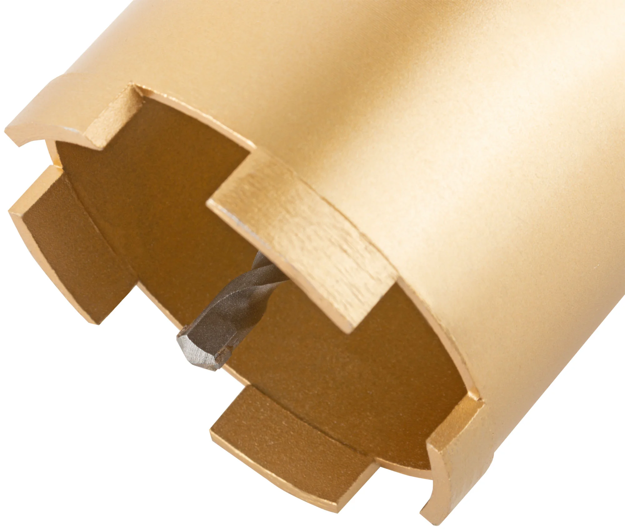 Изделие оснащено центрирующим сверлом и хвостовиком SDS-PLUS, что обеспечивает надежное крепление и точность сверления. Корпус изготовлен из инструментальной стали, а режущая кромка содержит технические алмазы, что значительно увеличивает срок службы инструмента.