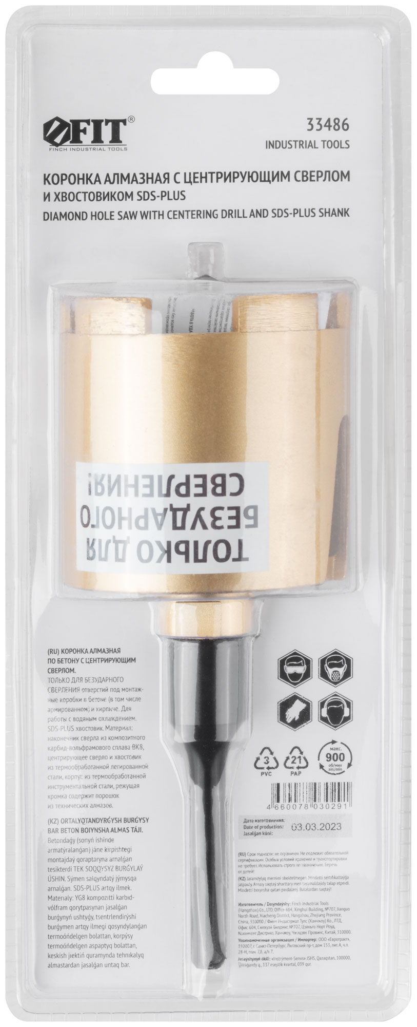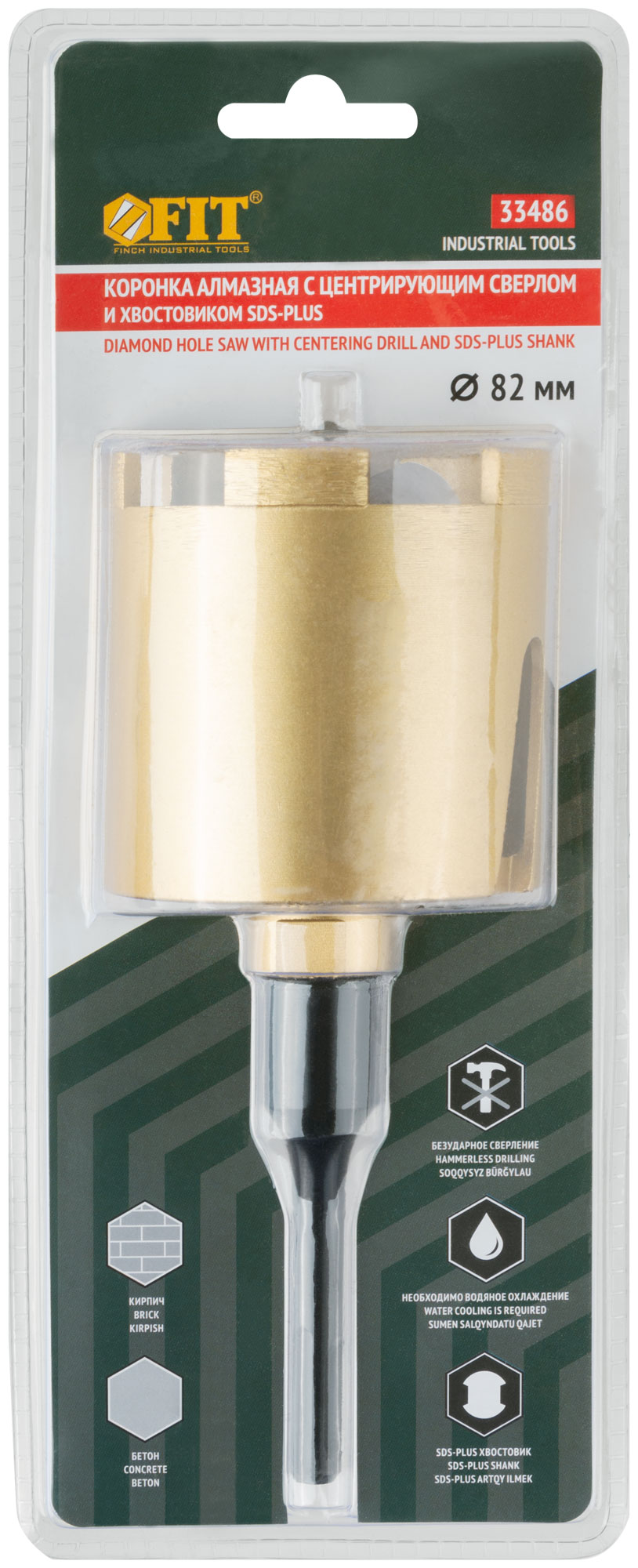 Выберите алмазную коронку FIT 33486, чтобы обеспечить точность и надежность сверления в бетонных и кирпичных стенах.