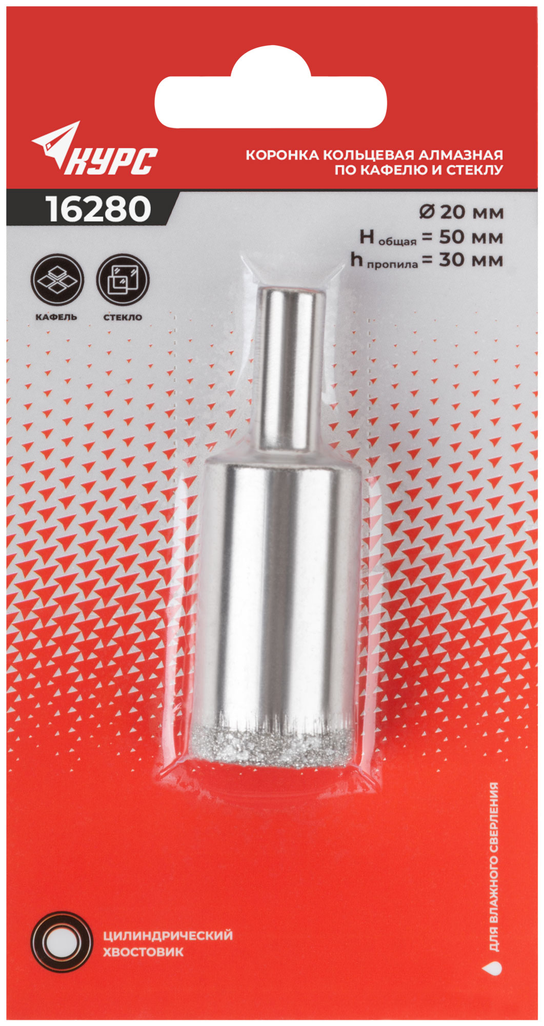 Используйте коронку кольцевую алмазную 20х50 мм от бренда КУРС для быстрого и точного вырезания отверстий в кафеле и стекле. Незаменима на этапе отделочных работ при установке сантехники или электрооборудования.