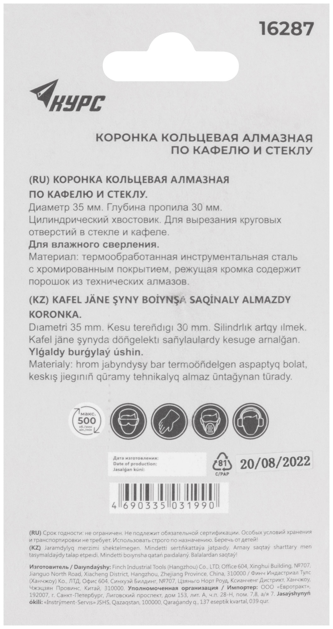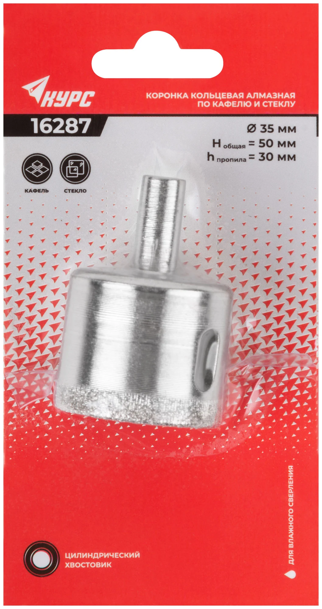 Выберите коронку кольцевую КУРС 35х50 мм, чтобы обеспечить точность и качество при сверлении кафеля и стекла.