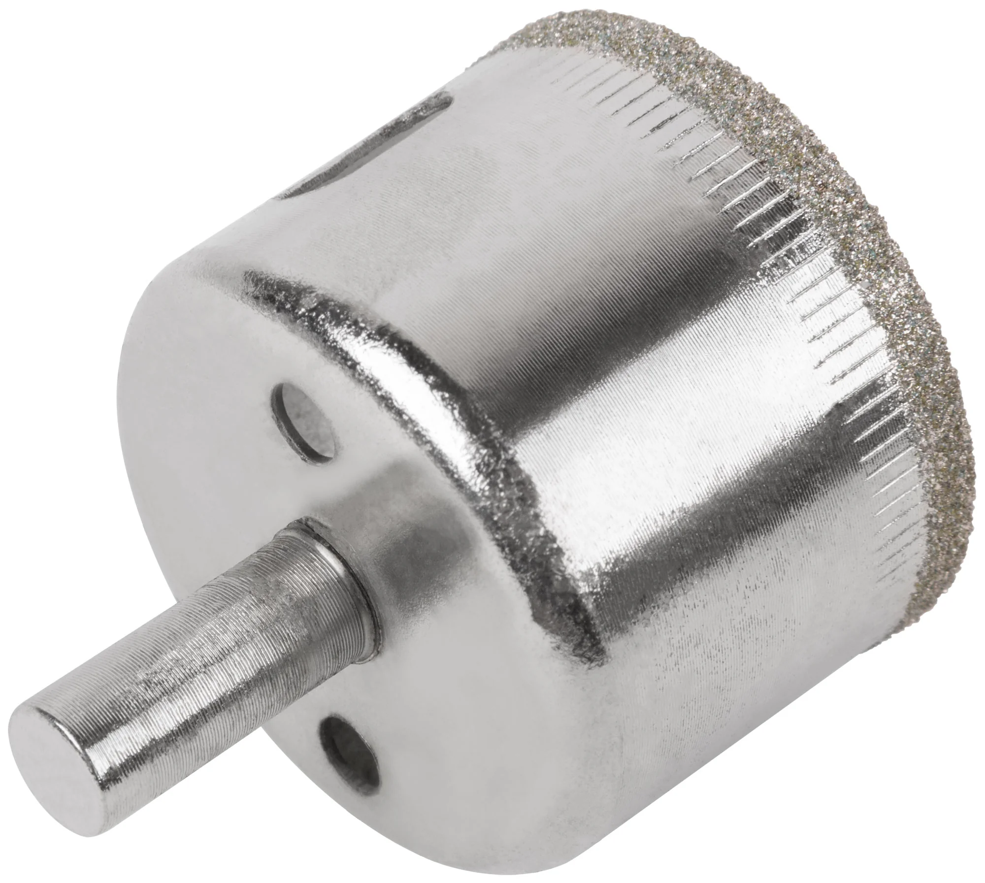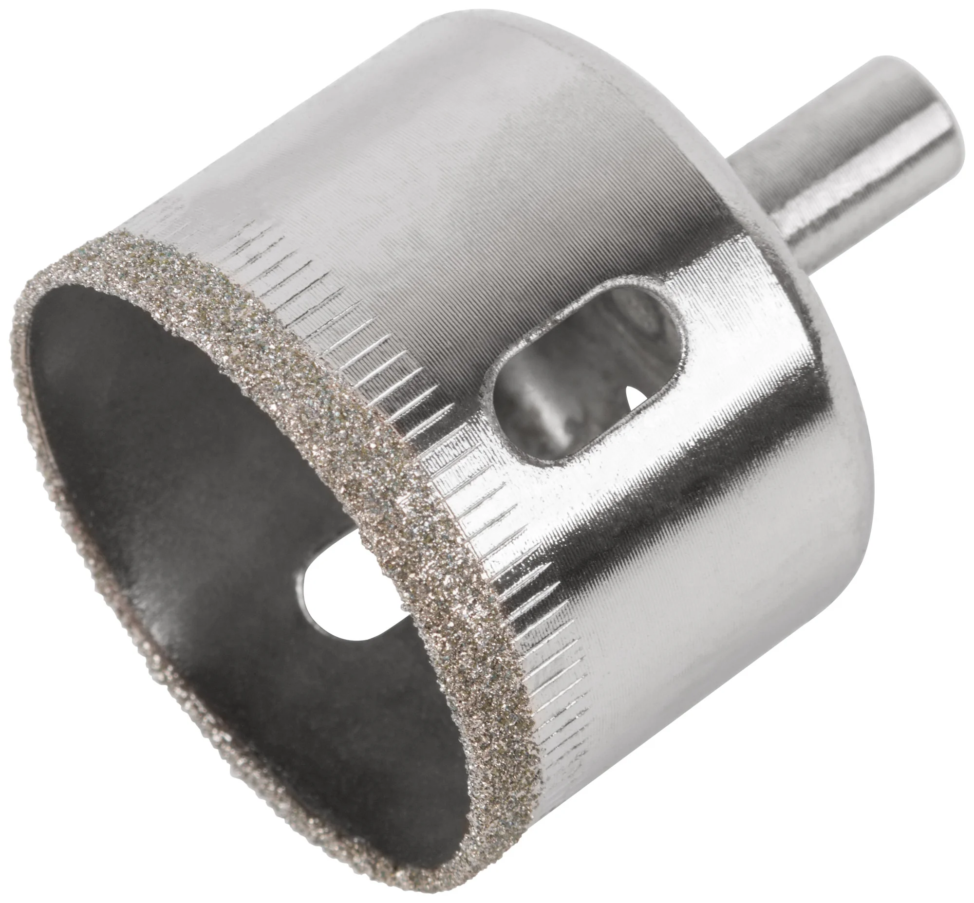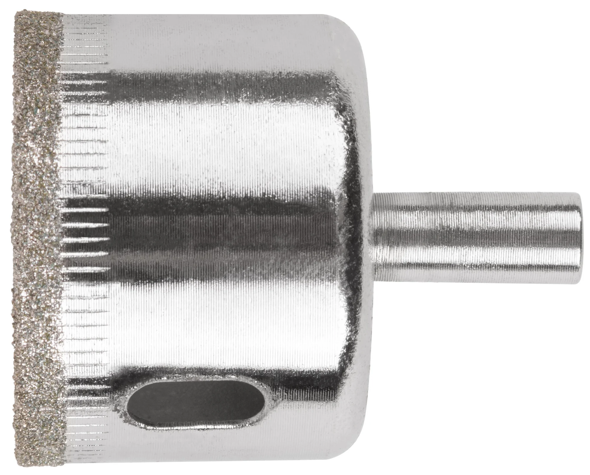 Конструкция коронки включает цилиндрический хвостовик, обеспечивающий надежную фиксацию в патроне дрели. Режущая кромка содержит порошок из технических алмазов, что гарантирует долговечность и высокую эффективность реза. Инструмент изготовлен из инструментальной стали, что обеспечивает его надежность и долговечность.