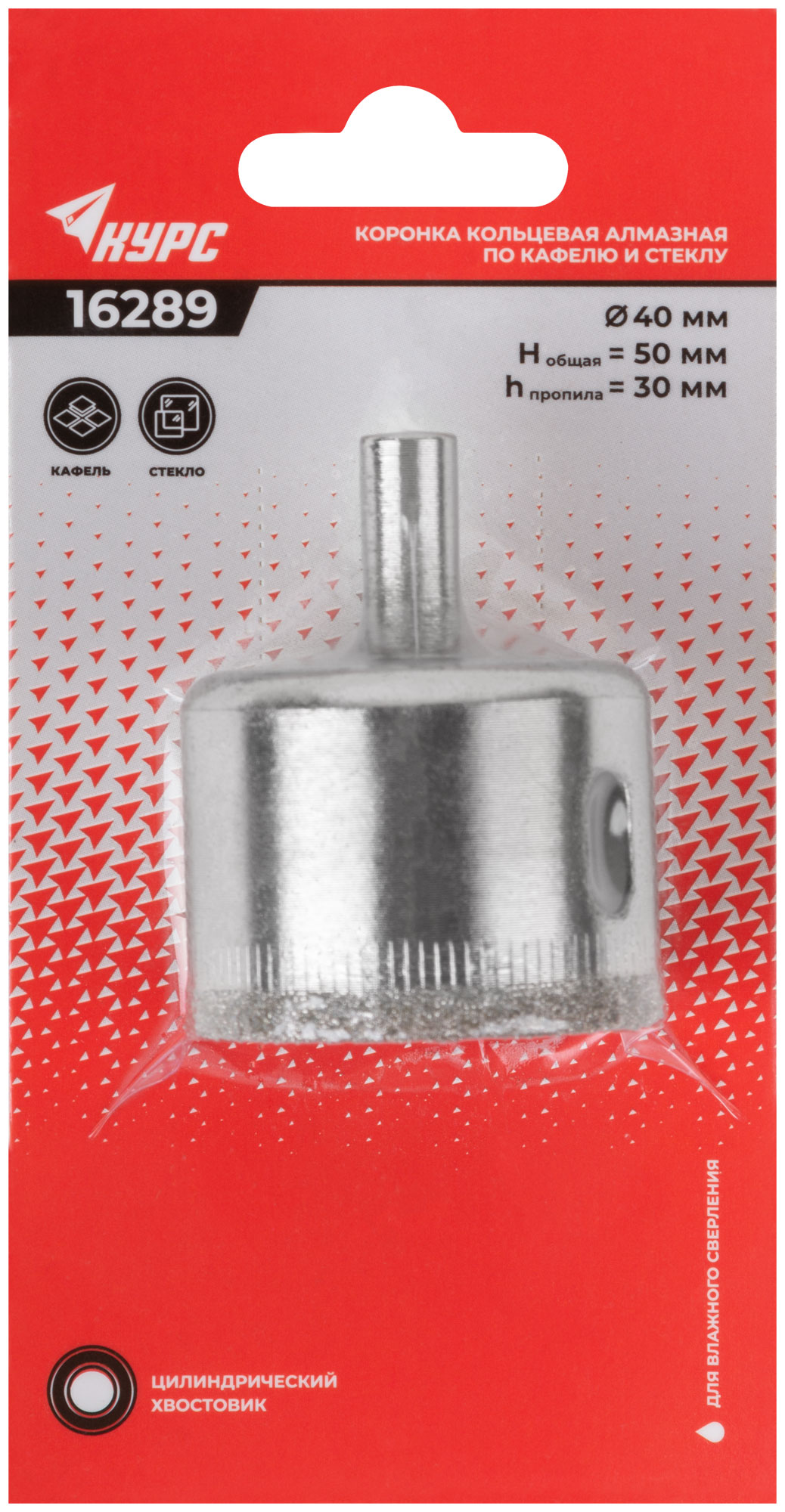 Коронка кольцевая КУРС 40х50 мм — это идеальный инструмент для создания аккуратных круговых отверстий в кафеле и стекле. Этот инструмент незаменим в ситуациях, когда необходимо сверлить без сколов и трещин, что особенно важно при работе с хрупкими материалами.