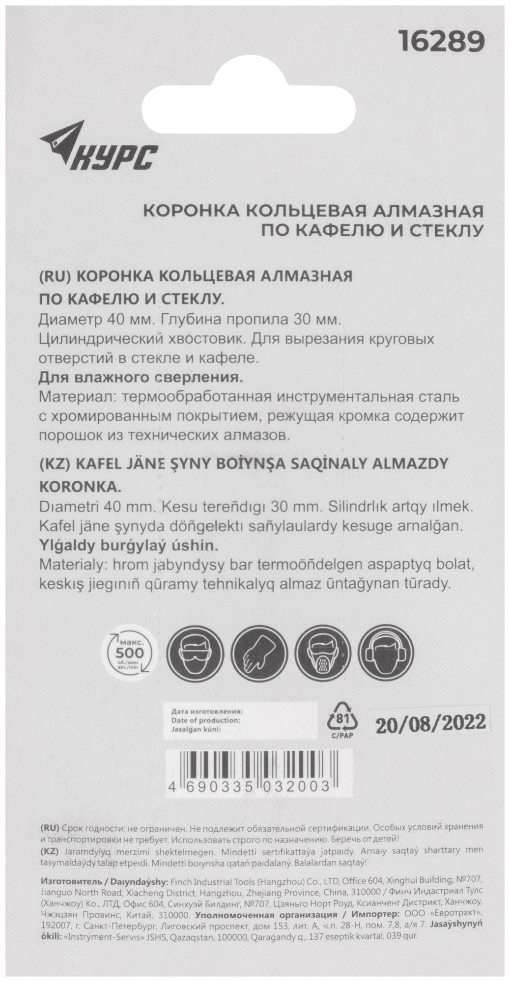 Выберите коронку КУРС 16289, чтобы обеспечить точность и надежность ваших профессиональных работ.