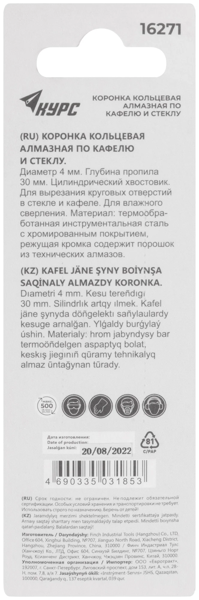 Выберите коронку КУРС 16271, чтобы обеспечить качественное сверление и долговечность.
