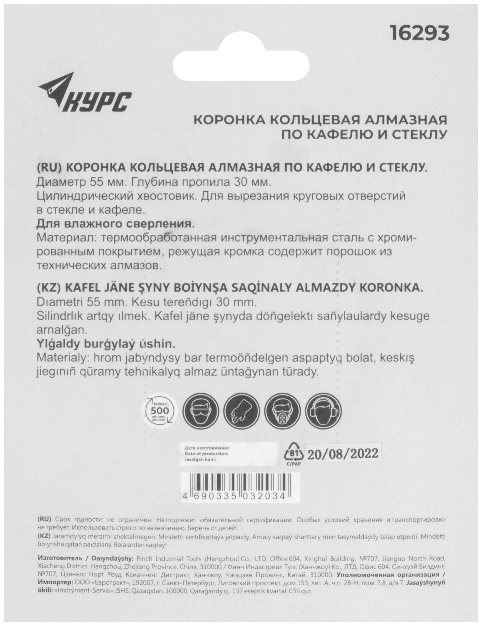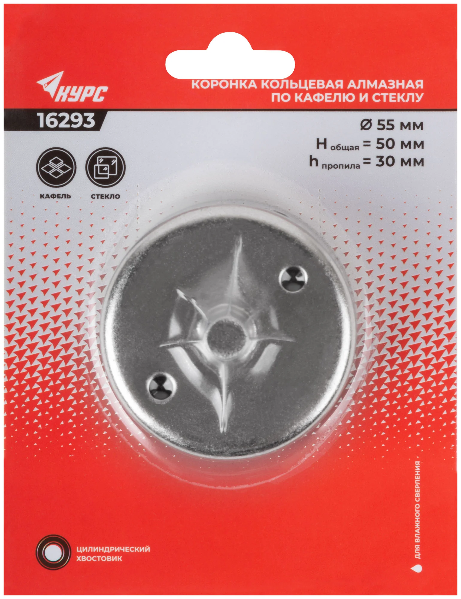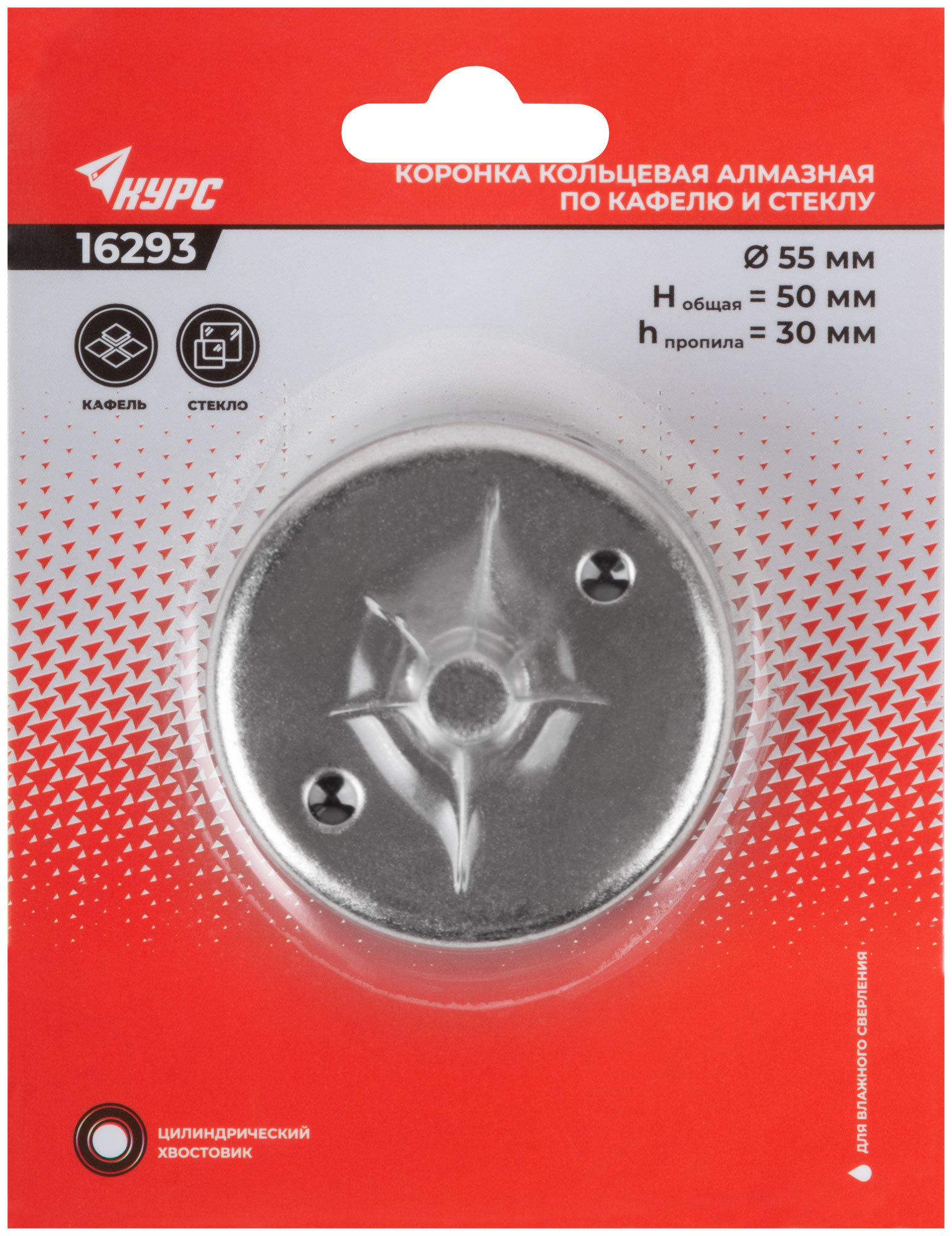Выберите коронку КУРС 16293, чтобы обеспечить точность и чистоту в работе с кафелем и стеклом, значительно облегчая процесс сверления.
