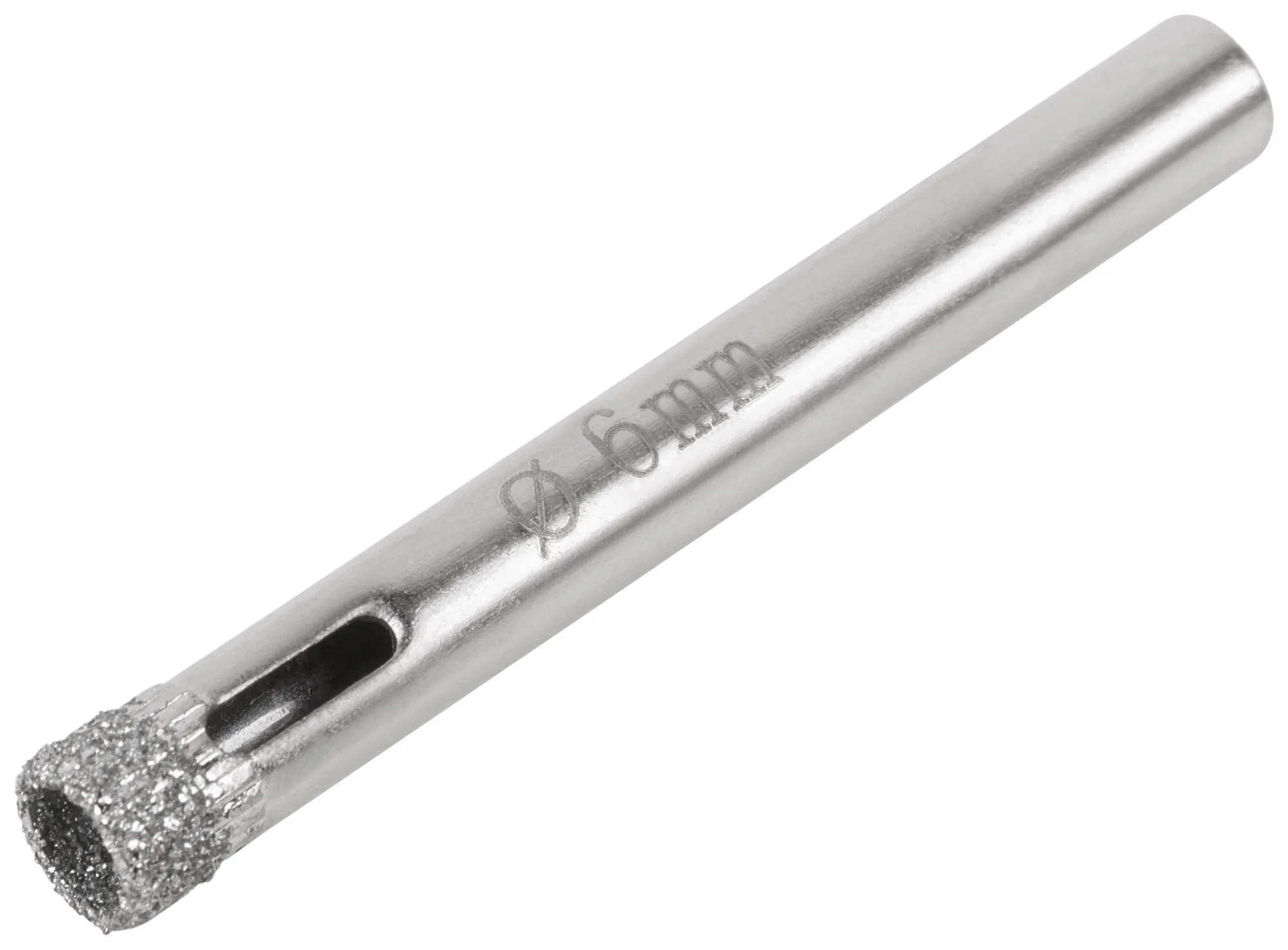 Изготовлена из инструментальной стали, оснащена режущей кромкой с техническими алмазами, что обеспечивает долговечность и надежность. Подходит для влажного сверления, что уменьшает риск повреждения сверлимого материала.