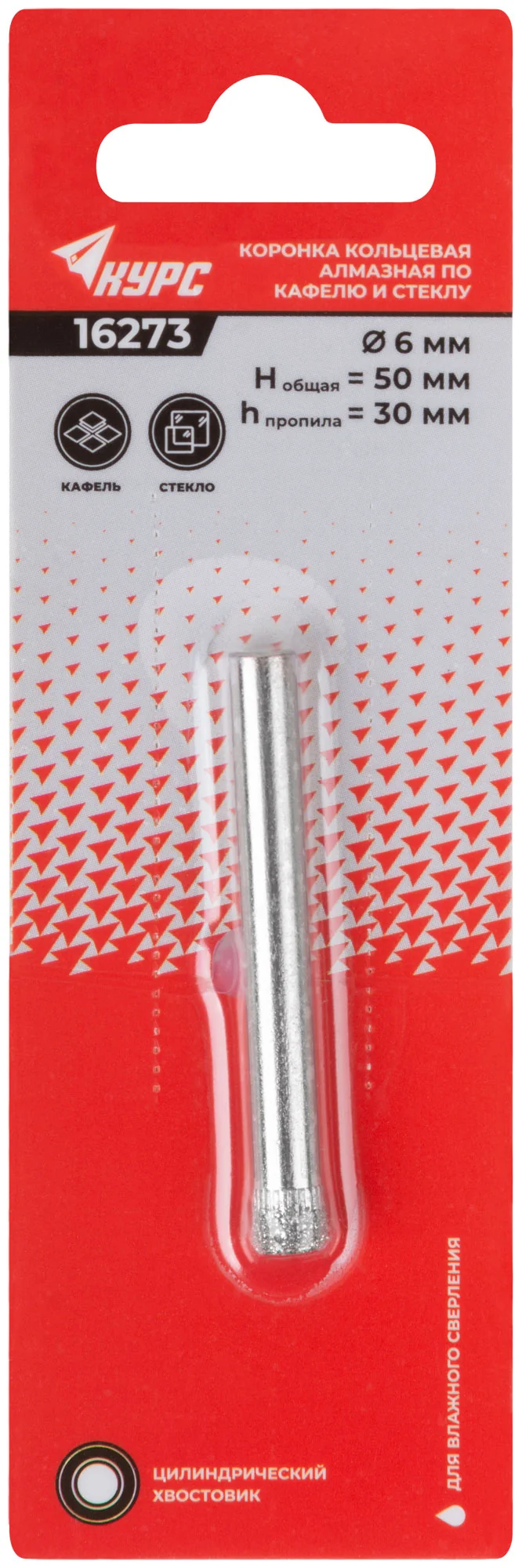 Выберите алмазную коронку КУРС 6х50 мм, чтобы точно и безопасно выполнять задачи по сверлению в кафеле и стекле.