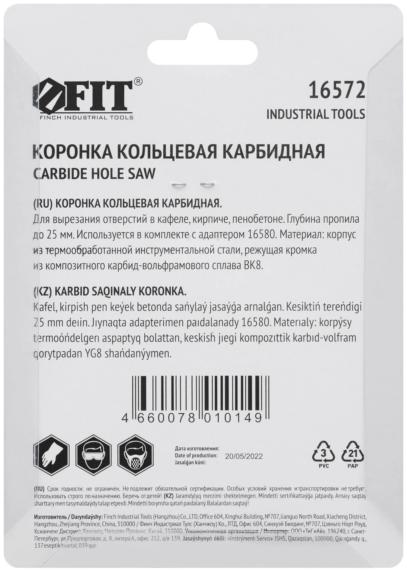 Выберите коронку FIT 16572, чтобы обеспечить точное и чистое сверление в различных строительных материалах.