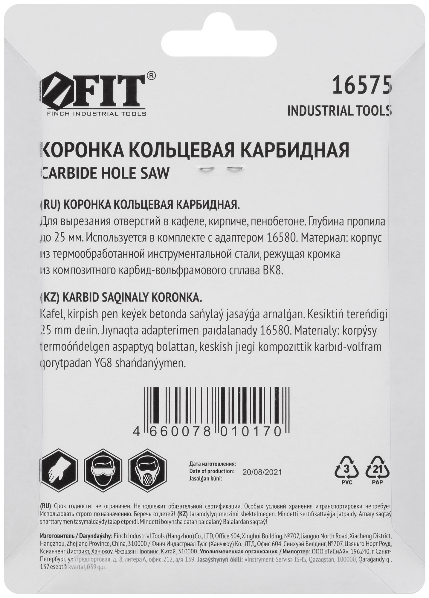 Выберите карбидную кольцевую коронку FIT 16575, чтобы достигать идеальных результатов при сверлении.