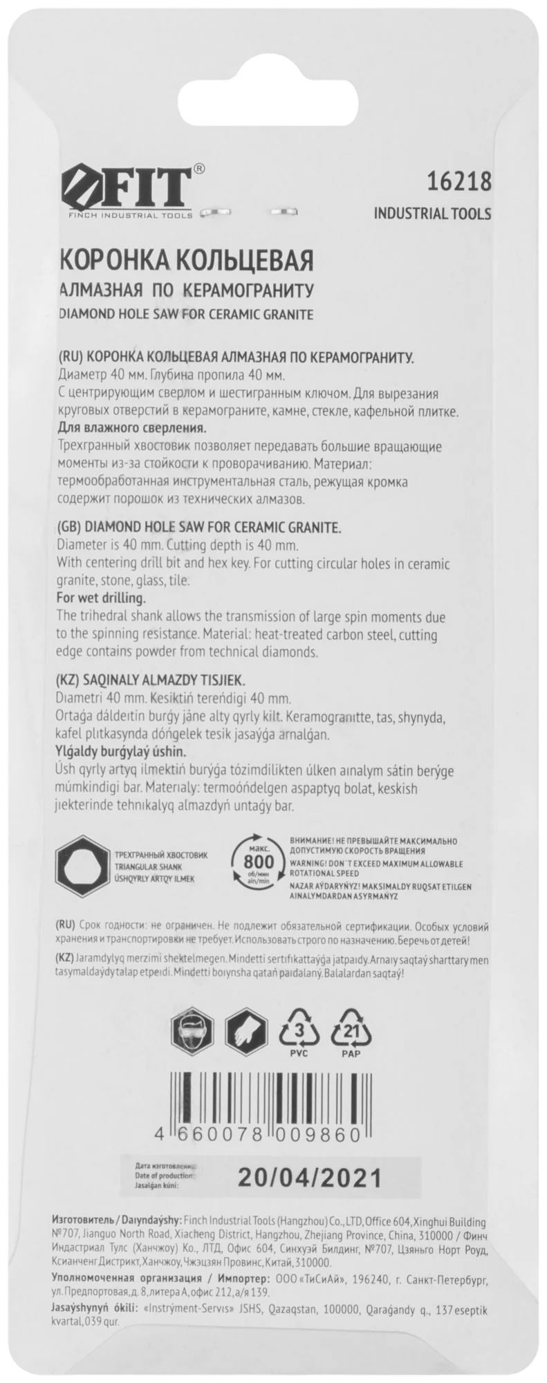 Выберите алмазную коронку FIT 16218, чтобы обеспечить чистоту и точность ваших строительных и ремонтных работ.