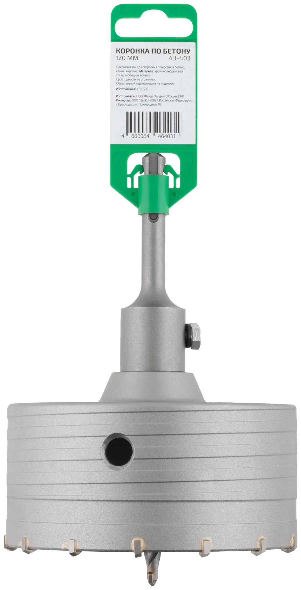 Изготовленная из хром-молибденовой стали с карбидной вставкой, коронка гарантирует высокую прочность и долговечность. Хвостовик длиной 100 мм обеспечивает надежное крепление в инструменте, что делает процесс сверления максимально безопасным и эффективным.