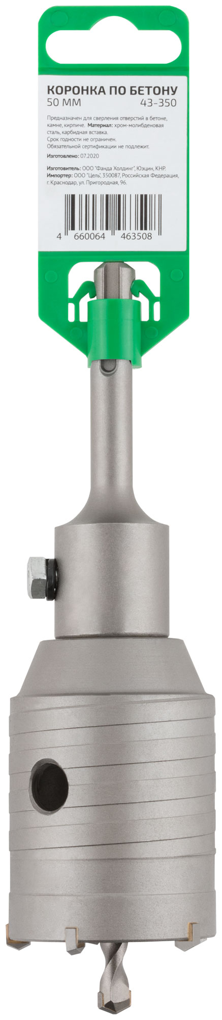 Изготовленная из хром-молибденовой стали с карбидной вставкой, коронка обладает высокой прочностью и долговечностью. Хвостовик SDS-Plus длиной 100 мм обеспечивает надежное крепление в инструменте, минимизируя риск проскальзывания.