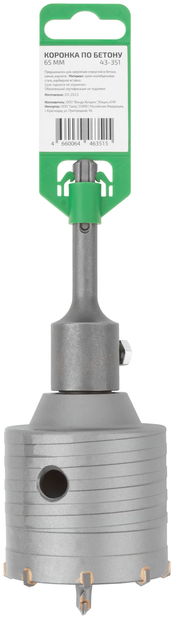 Эта коронка предназначена для сверления отверстий в бетоне, камне и кирпиче, что делает её идеальной для строительных и ремонтных работ. Она поможет вам быстро и эффективно создать отверстия нужного диаметра в труднодоступных местах.