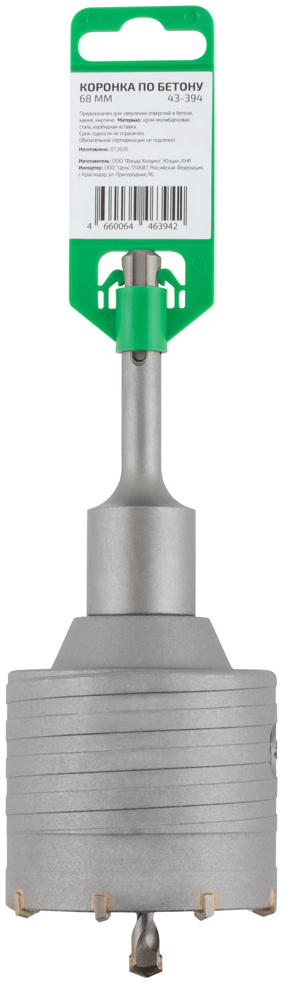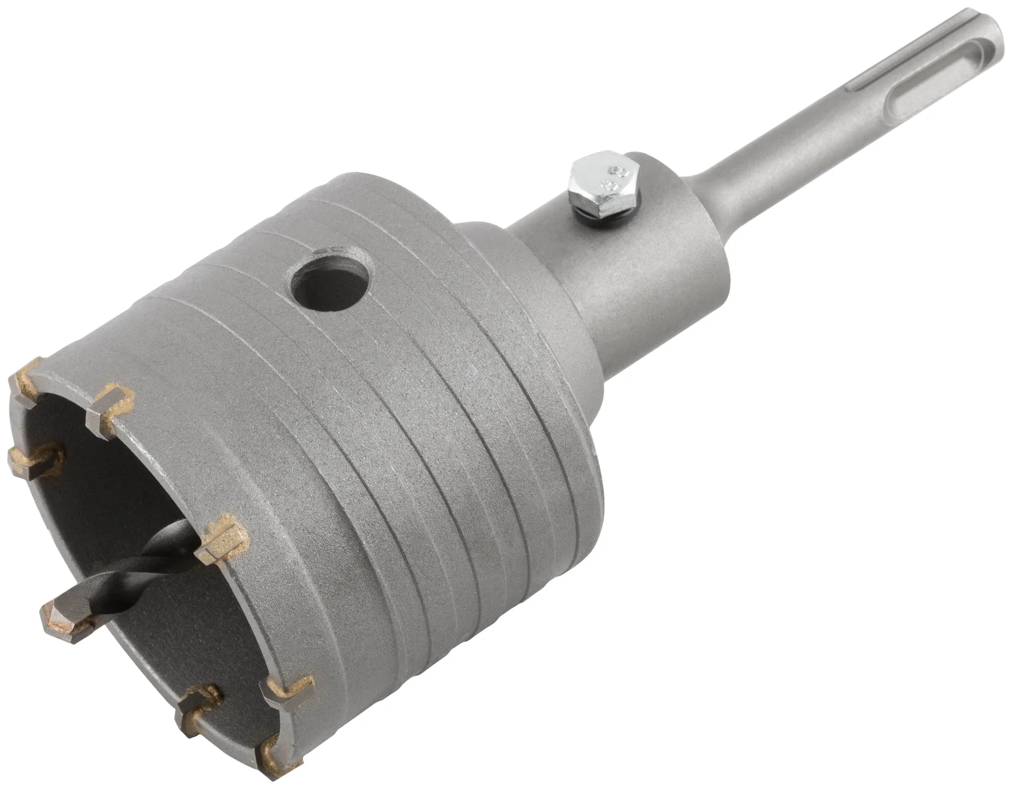 Эта коронка идеально подходит для создания отверстий в бетоне, камне и кирпиче. Используйте её на строительных площадках для монтажа коммуникаций или установки крепежей. Надежный инструмент для установки розеток и трубопроводов без лишних усилий.