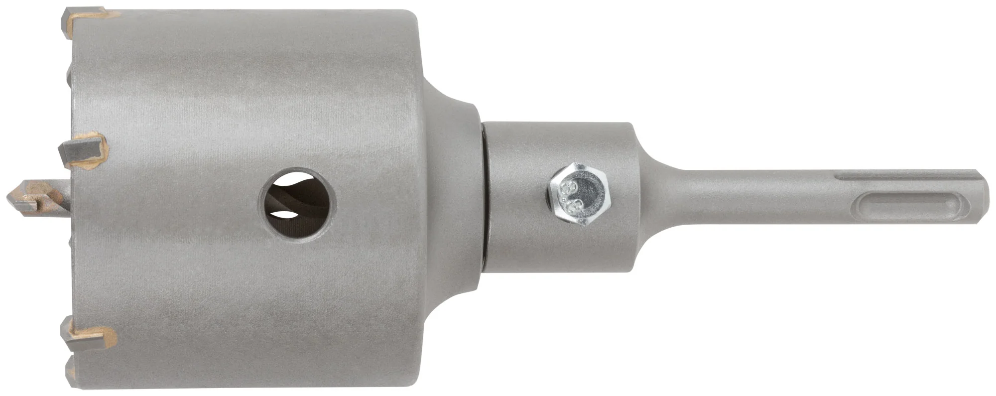 Коронка оснащена твердосплавными резцами с добавлением карбида вольфрама, что обеспечивает долгий срок службы и высокую производительность. Хвостовик SDS-Plus гарантирует надежную фиксацию в любом перфораторе, а посадочное отверстие М22 делает установку быстрой и простой.