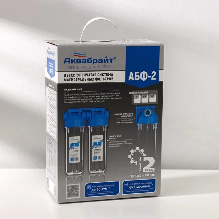 Этот двухступенчатый фильтр для воды – оптимальное решение для получения чистой и безопасной воды в вашем доме. Выбирайте качество очистки и надежность!