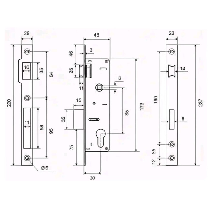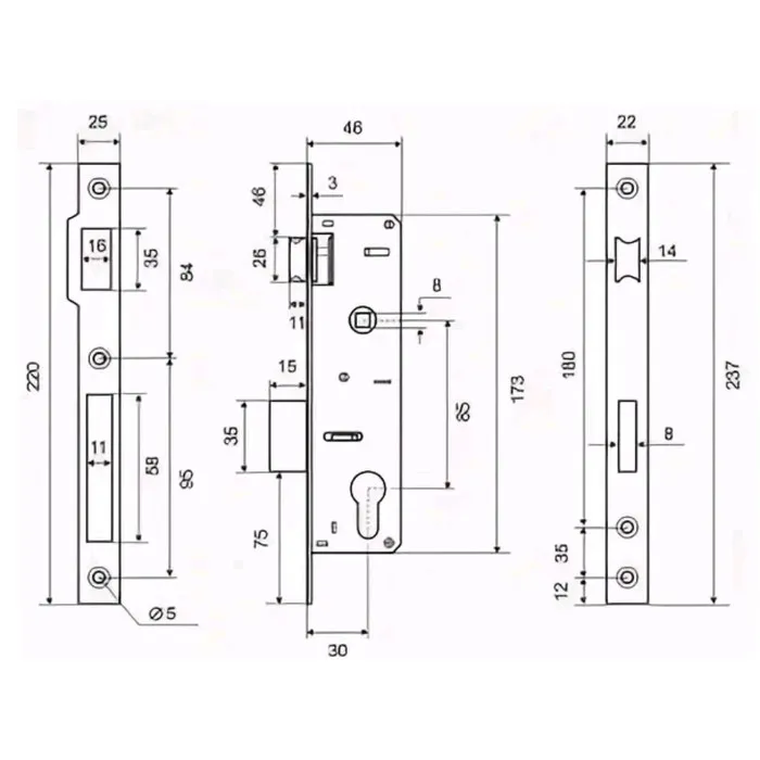 Замок предназначен для установки в правые и левые двери. Он представляет собой коробкообразный корпус с защёлкой.