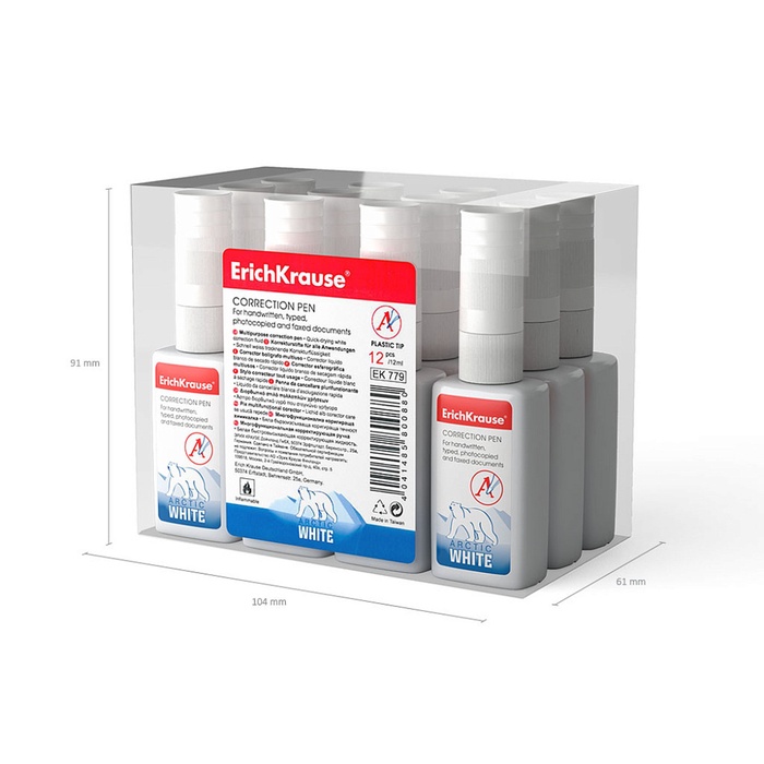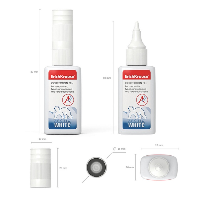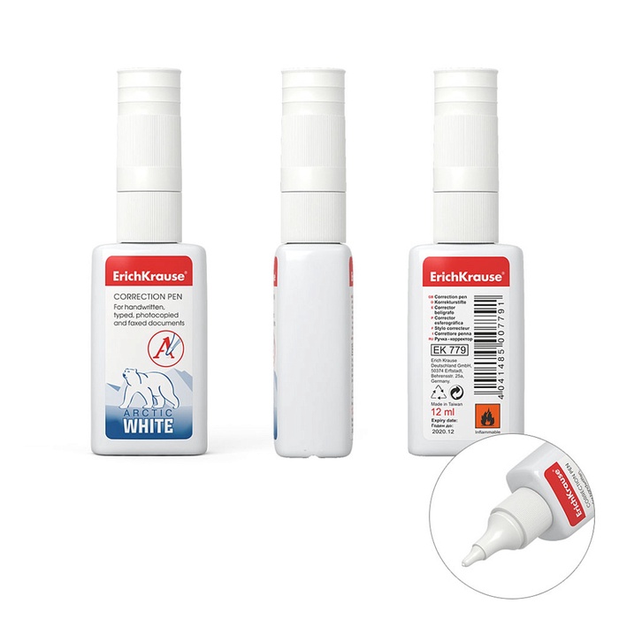 Корректирующая жидкость 12 мл, ErichKrause Arctic White, супер-белая, плавное нанесение, с пластиковым наконечником — Характеристики