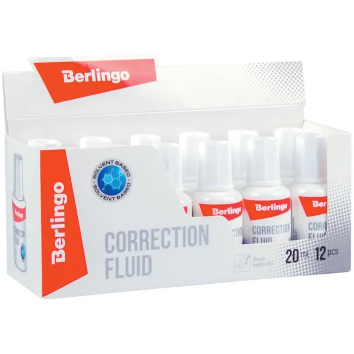 Корректирующая жидкость 20 мл Berlingo, на химической основе, с кисточкой — Характеристики
