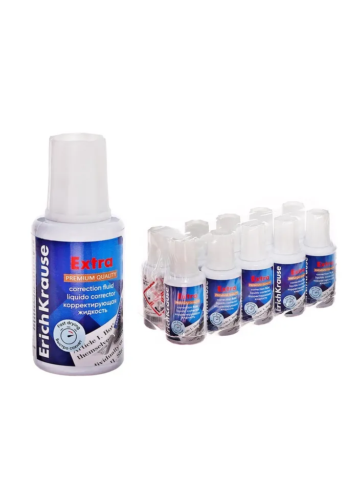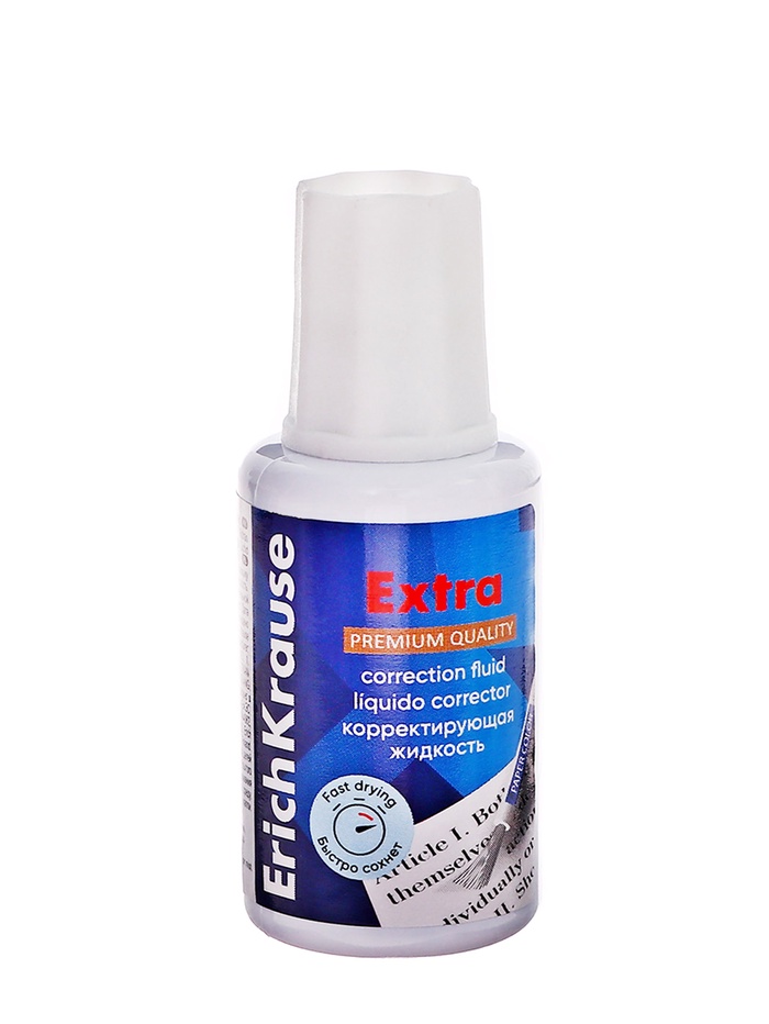 Корректирующая жидкость 20 мл, ErichKrause Extra, на основе растворителя, кисть — Характеристики