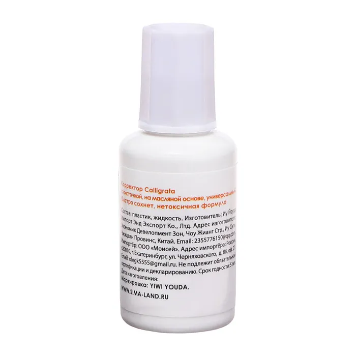 Корректор 8 мл "Calligrata" с кисточкой, эмульсионный, на водной основе.