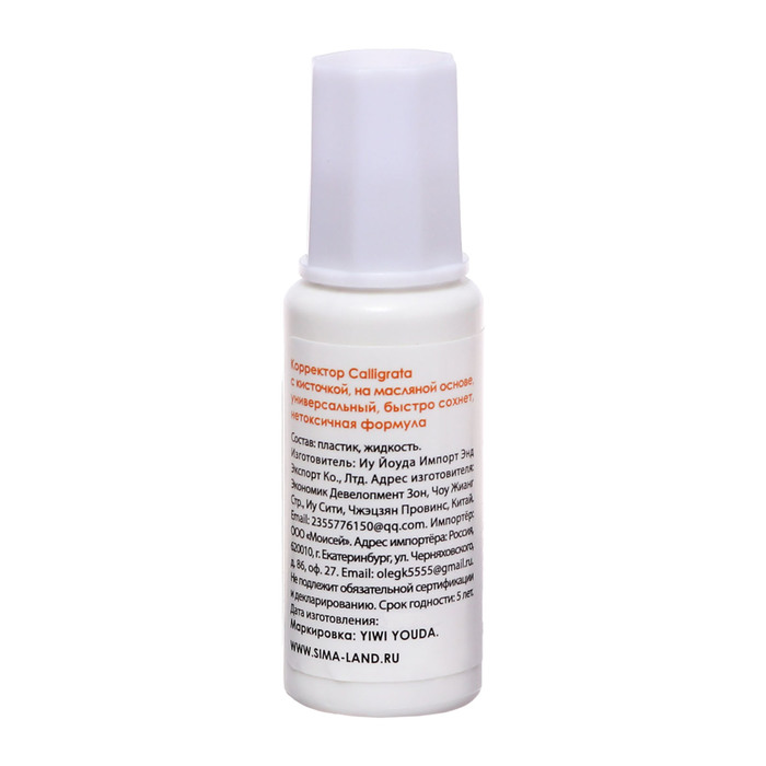 Корректор 8 мл, Calligrata с кисточкой, эмульсионный, на масленной основе — Характеристики