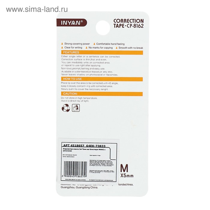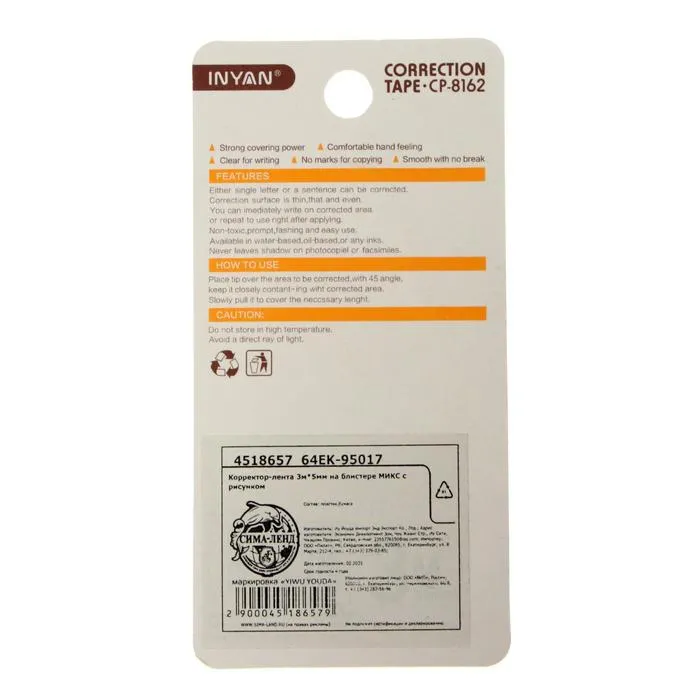Корректор-лента 3 м × 5 мм, с рисунком, блистер, европодвес, корпус МИКС — Характеристики